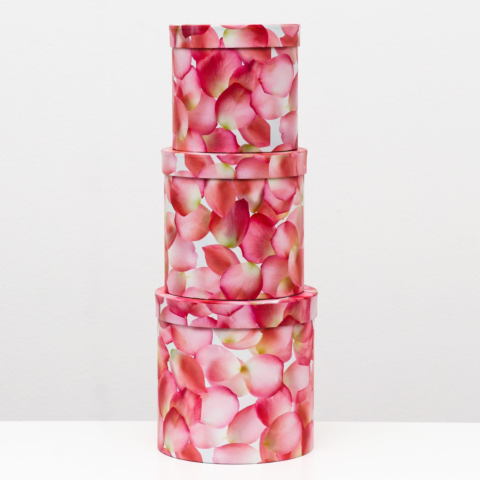 Набор круглых коробок 3 в 1 "Нежно-розовые цветы", 19,5 x 19 - 15,5 x 15 см
