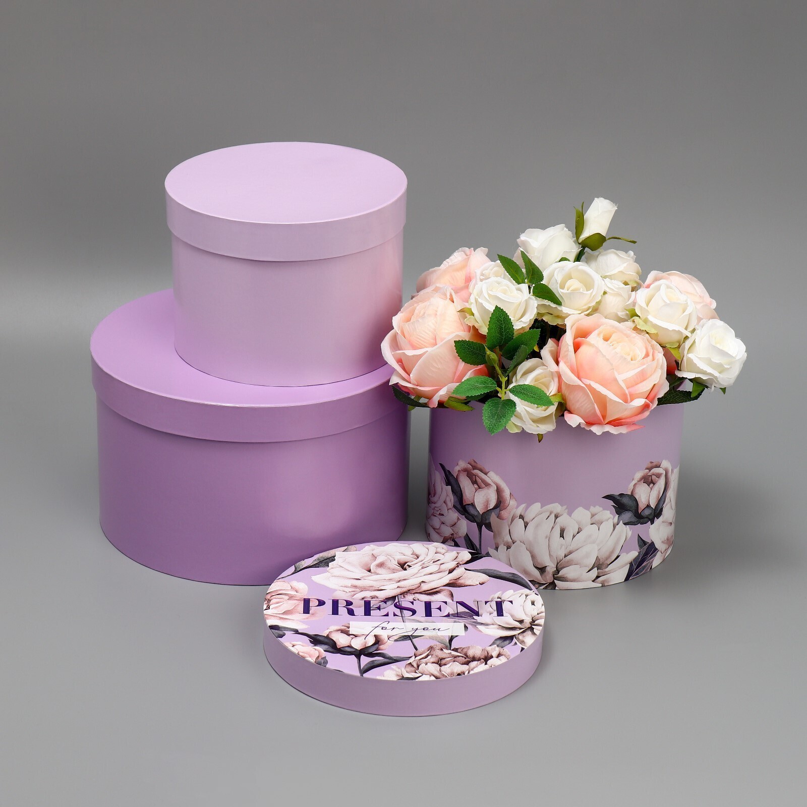 Набор шляпных коробок 3 в 1 «Лавандовый», 18 × 18 × 13‒25 × 25 × 15 см