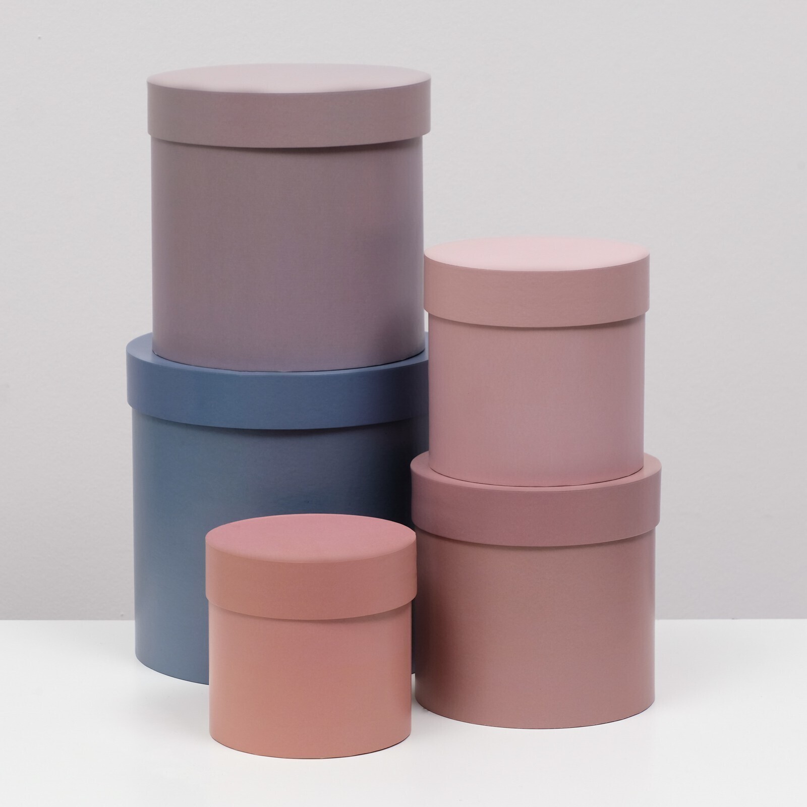 Набор круглых коробок 5 в 1 "Песочный", 13 х 13,5 -19.5 х 23 см