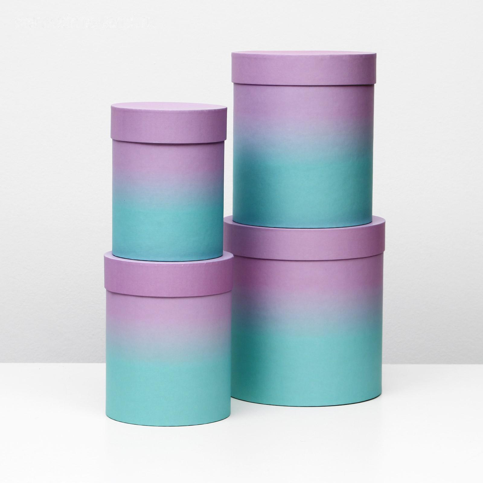 Набор круглых коробок 4 в 1 "Лилово-мятный", 23 х 23 х 25 - 15 х 15 х 20 см