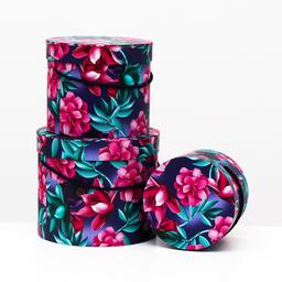 Набор круглых коробок 3 в 1 "Розовые цветы", 23 x 19,5 - 17 x 14 см