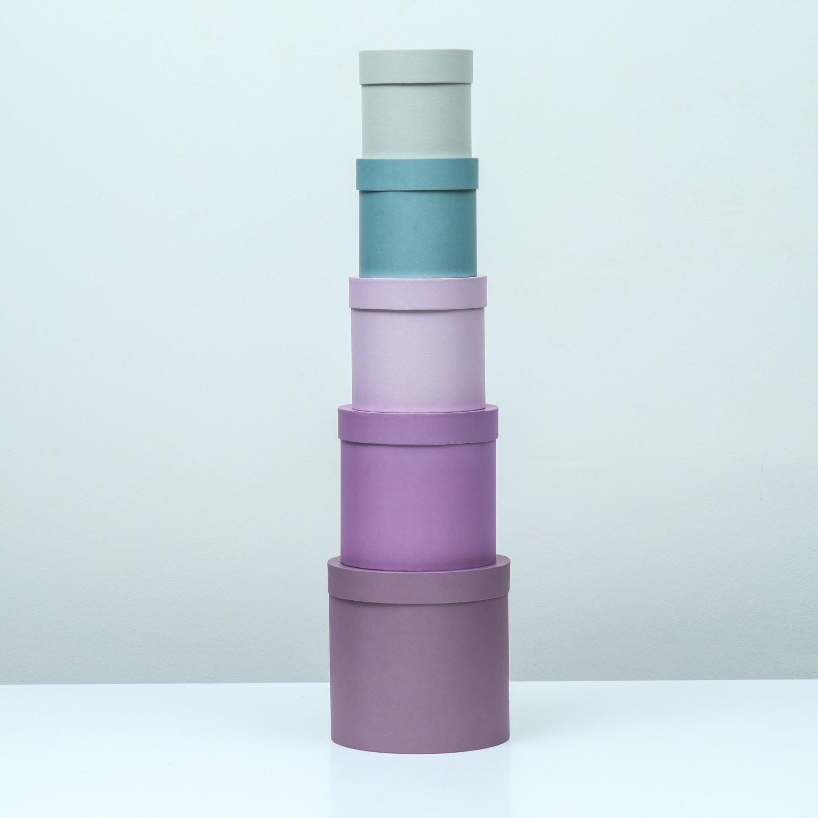 Набор круглых коробок 5 в 1 "Черничный", 23 х 23 х 23 - 13,5 х 13,5 х 13,5 см
