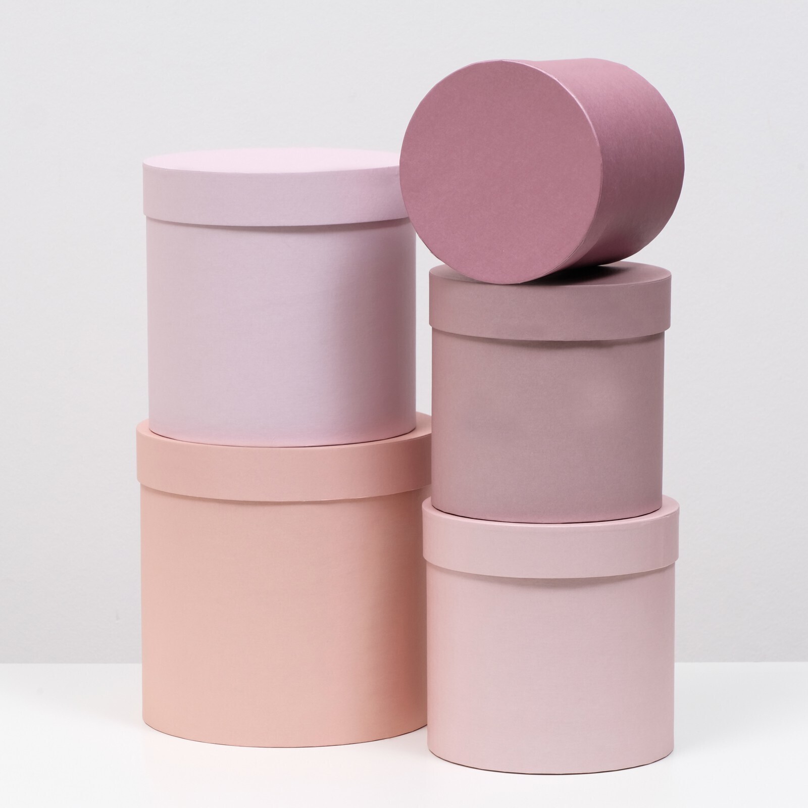 Набор круглых подарочных коробок 5 в 1 «Пудра», 20 × 20 × 20‒13,5 × 13,5 × 13,5 см