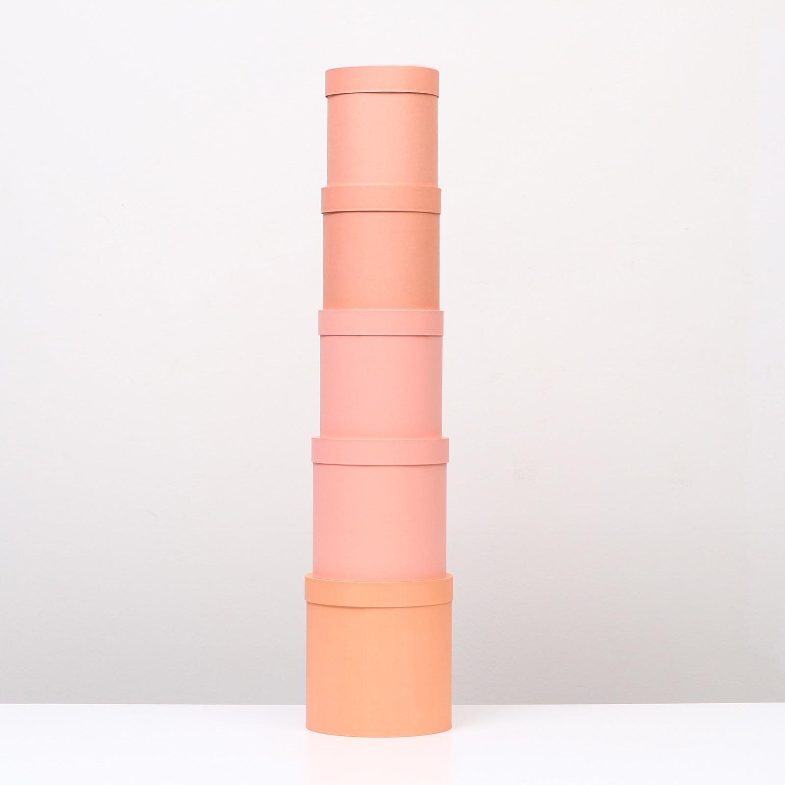 Набор круглых коробок 5 в 1 "Краски", персиковый, 25 х 25 х 25 - 19 х 19 х 19 см