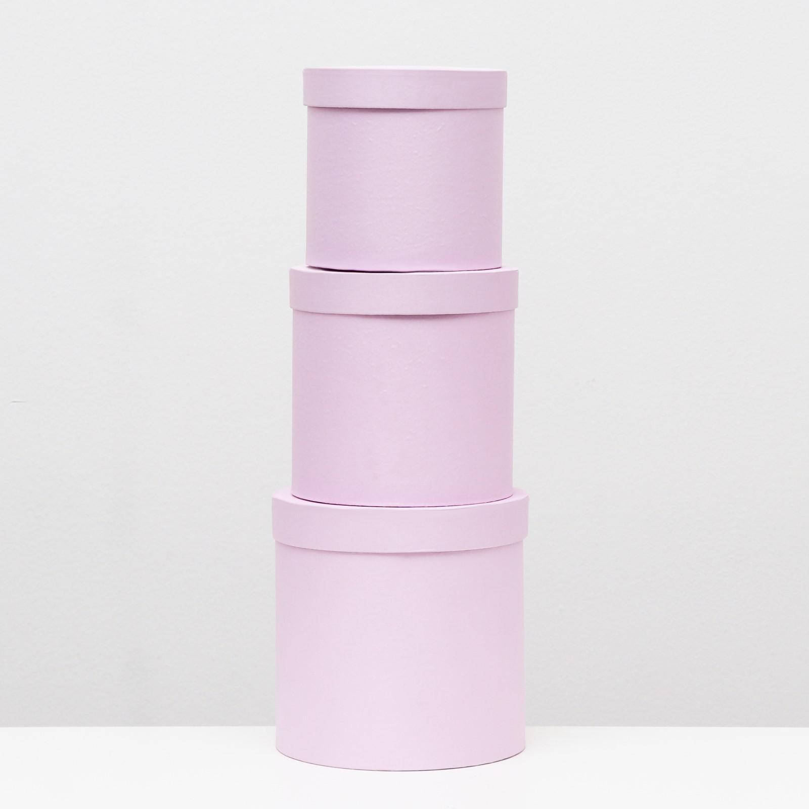 Набор круглых коробок 3 в 1 "Розовый текстиль", 19,5 x 19 - 15,5 x 15 см