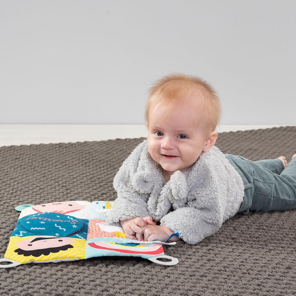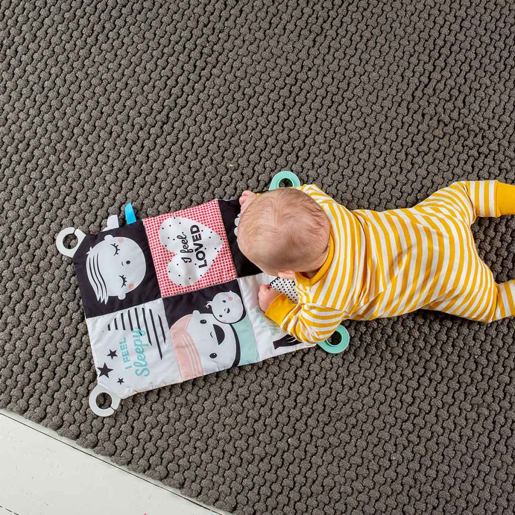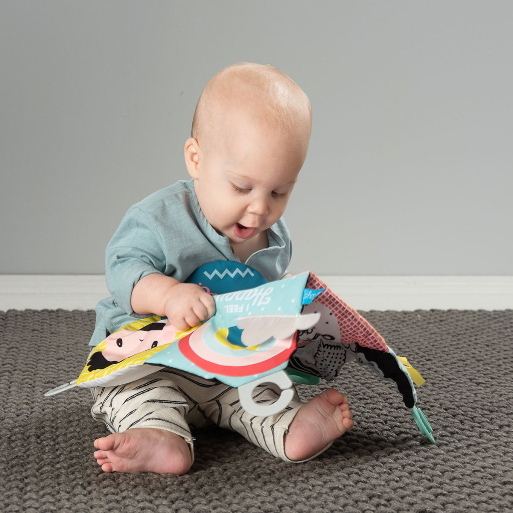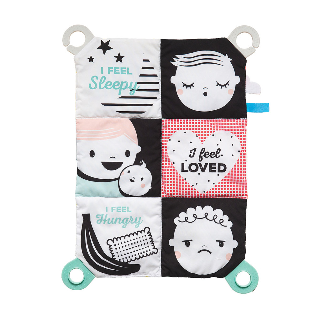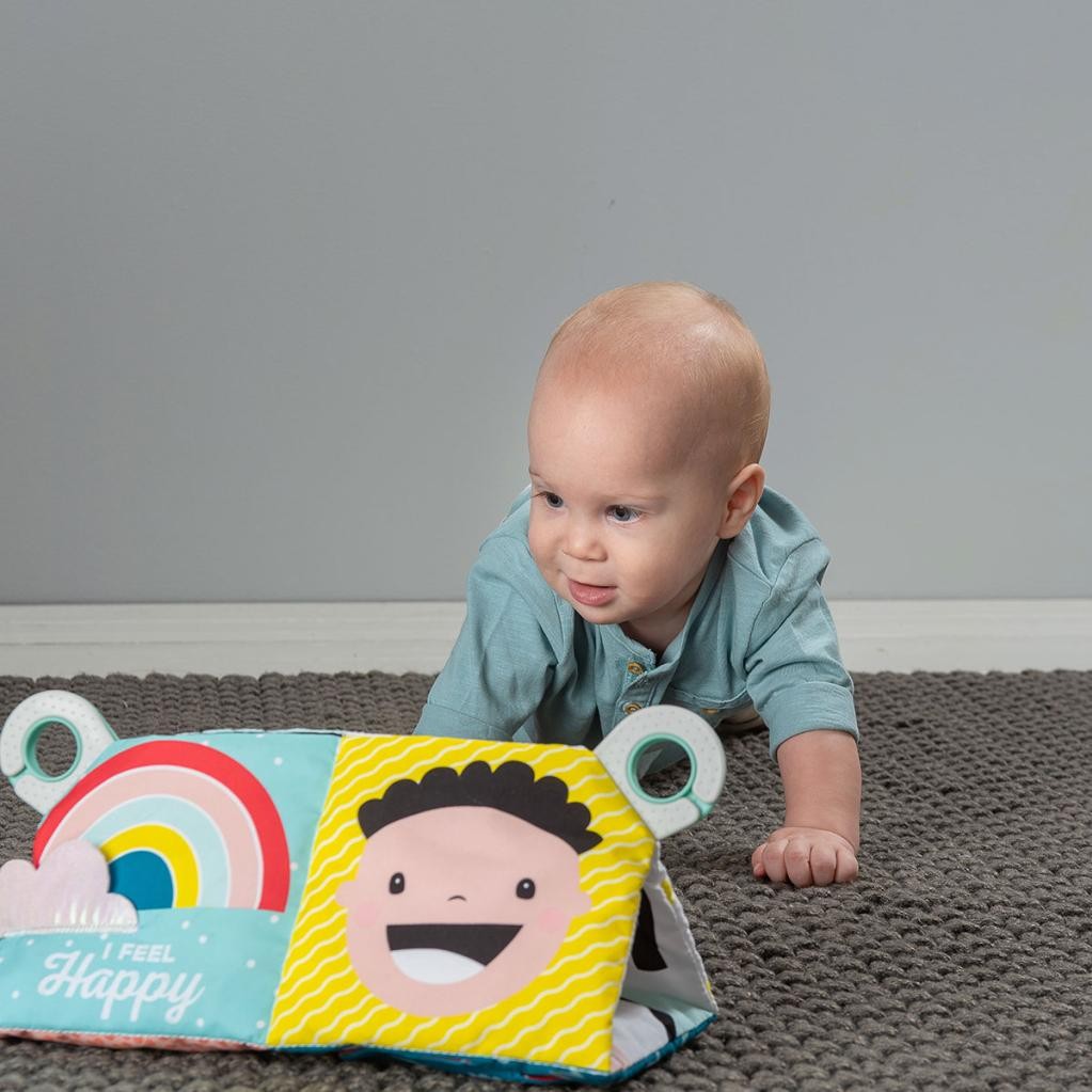 Розвиваюча іграшка, що шелестить, МОЇ ЕМОЦІЇ - це 12 м'яких «сторінок» з малюночками і розвиваючими елементами. Рекомендовано для дітей від народження.