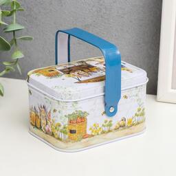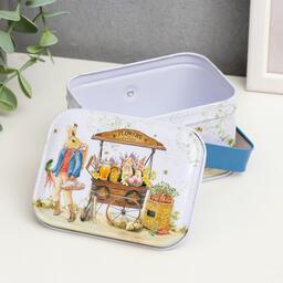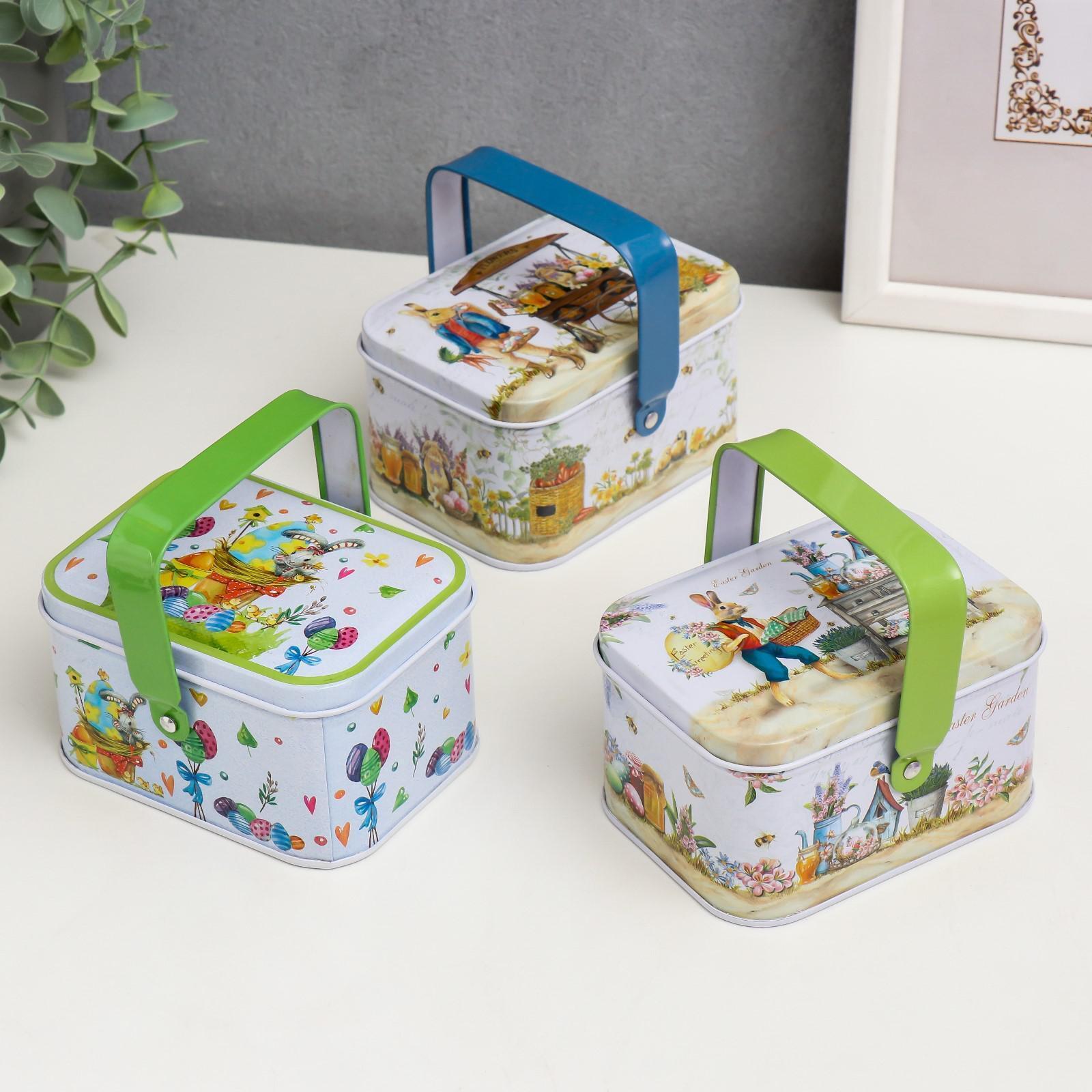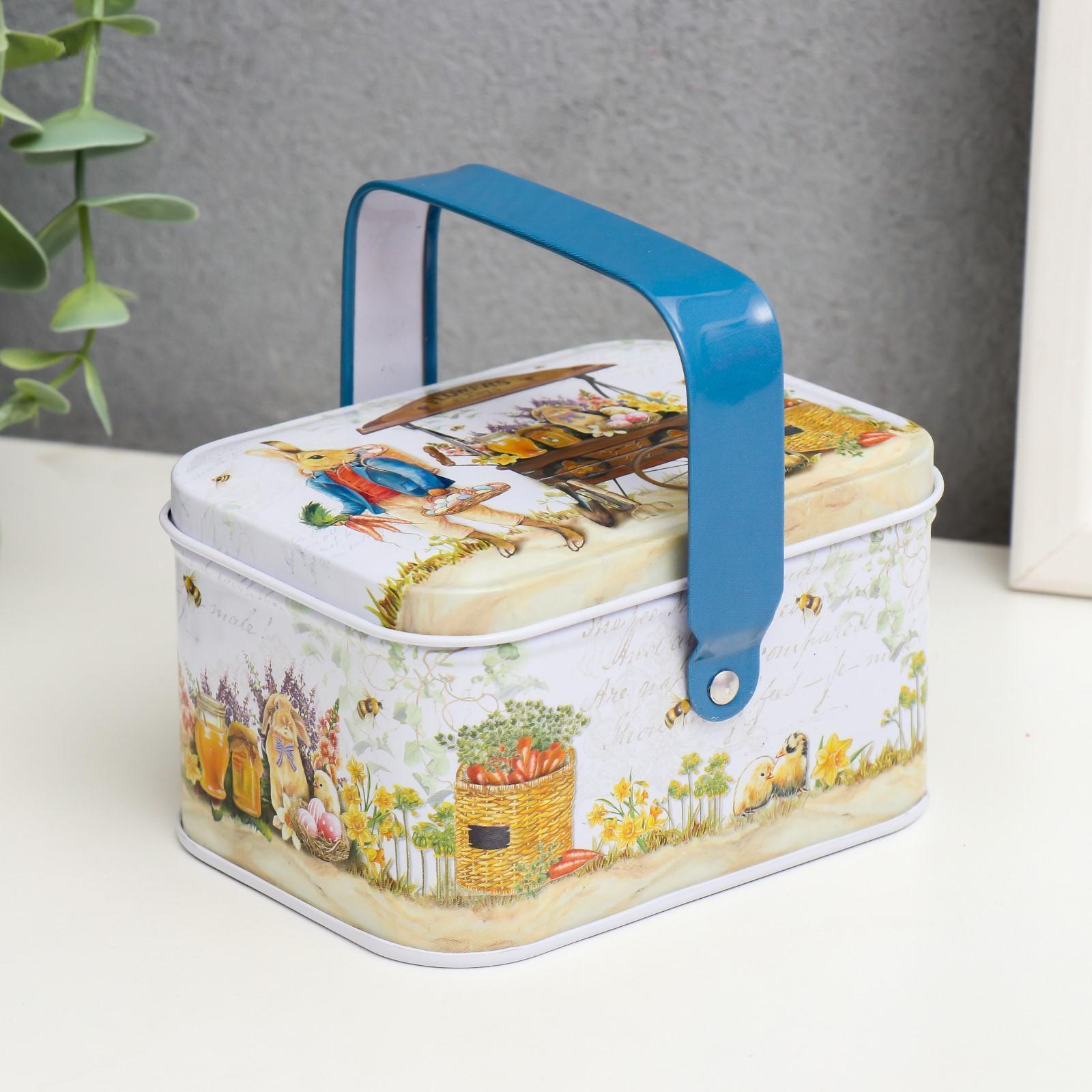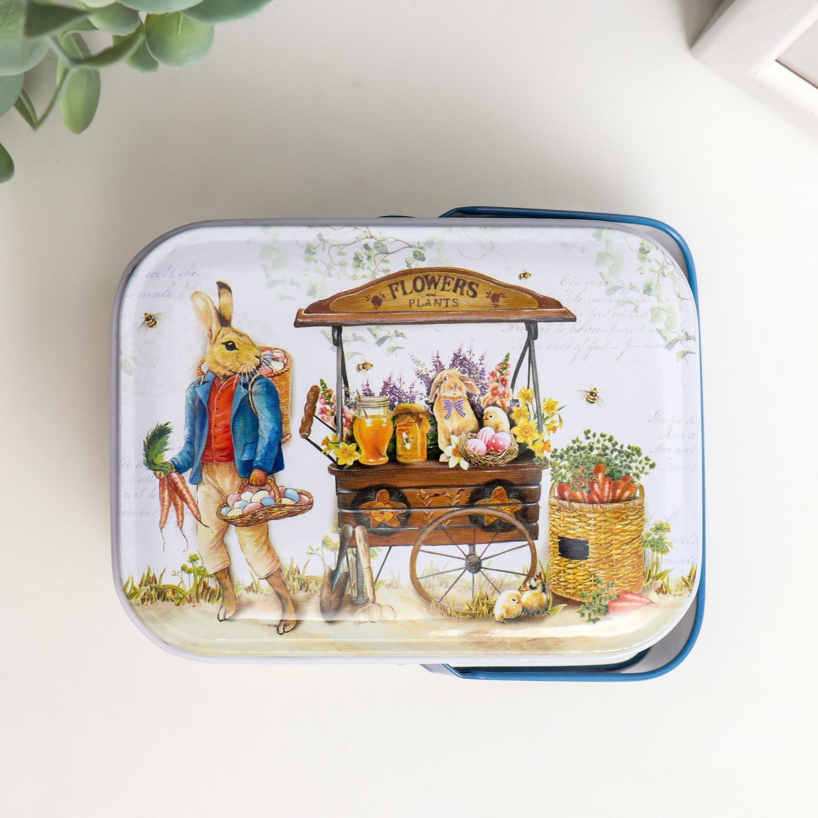Шкатулка металл с ручкой "Крольчата с яйцом" 6х10,5х8 см МИКС