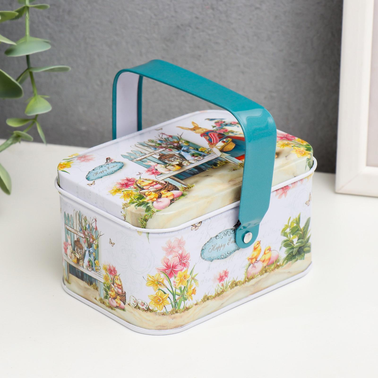 Шкатулка металл с ручкой "Счастливой Пасхи" 6х10,5х8 см МИКС