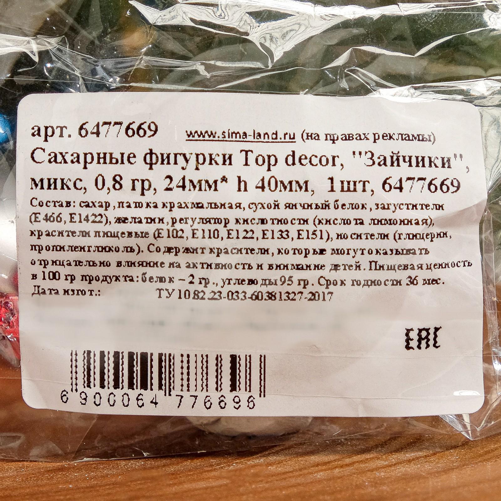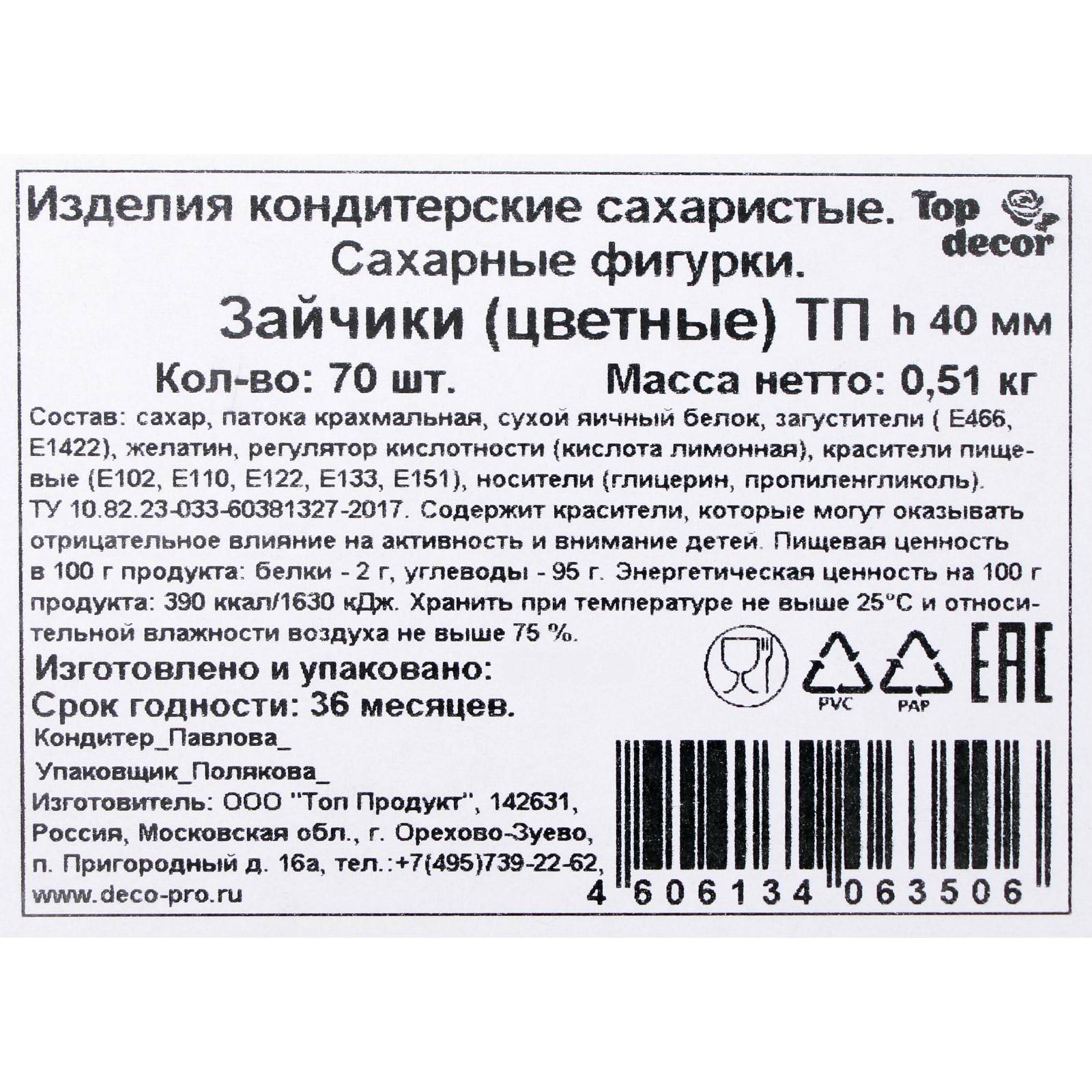 Сахарная фигурка, зайчик, микс, h 40 мм