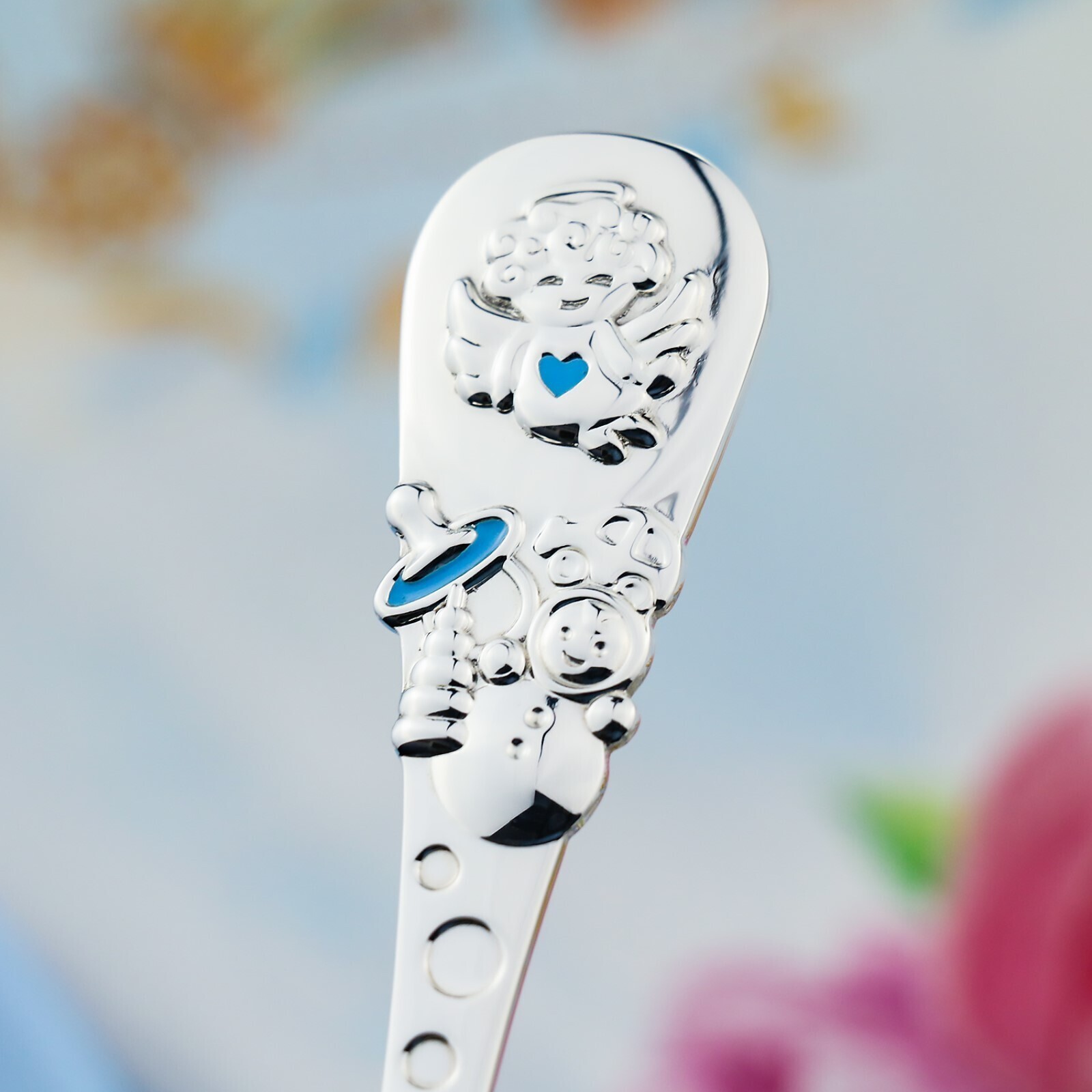 Ложка «Ангел» посеребренная, голубая эмаль, в футляре