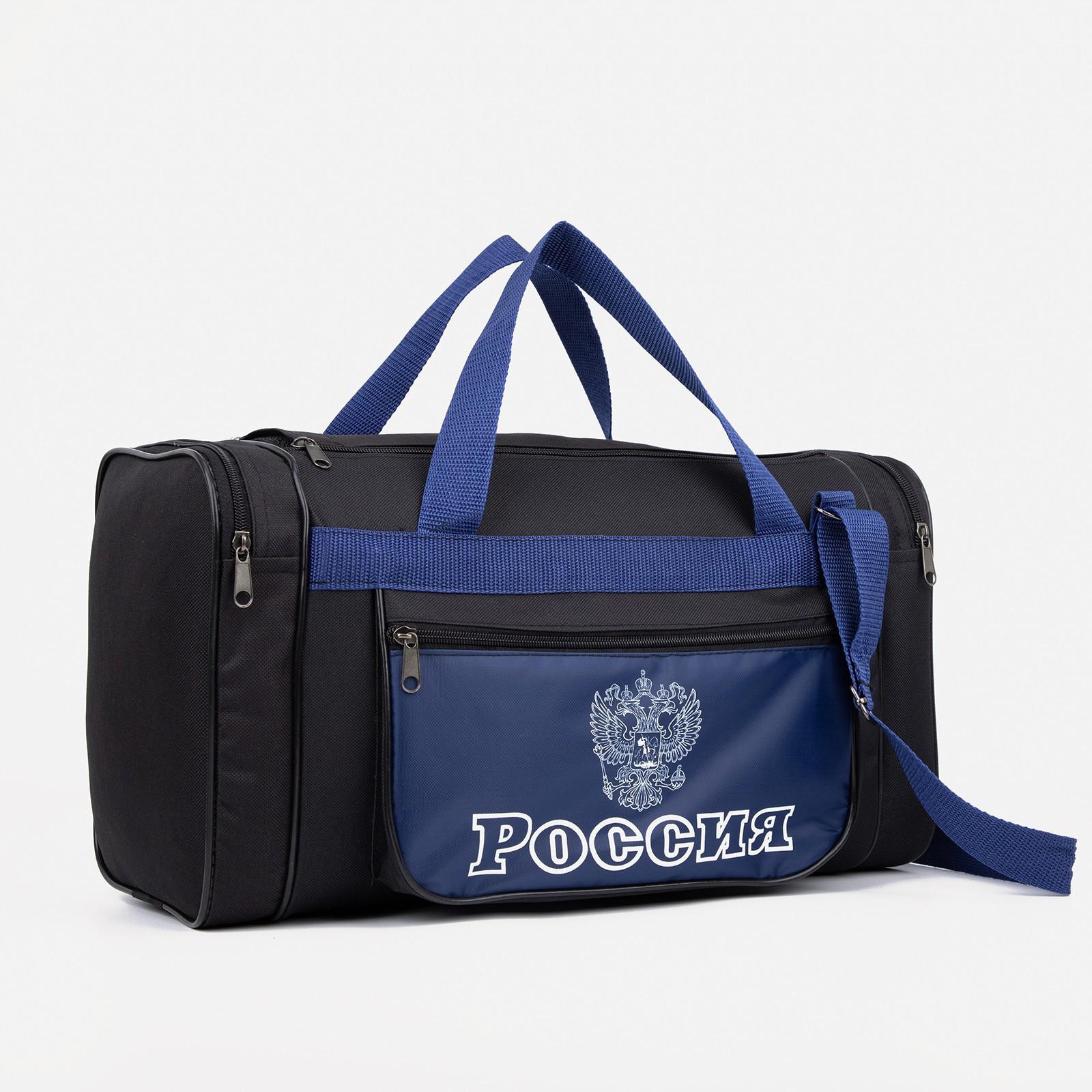 Сумка спортивная на молнии, 3 наружных кармана, цвет синий/чёрный