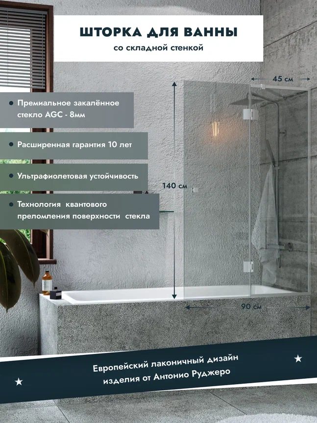 Шторка на ванну стеклянная BENETTO 1400х900 (450-450) BEN402SL