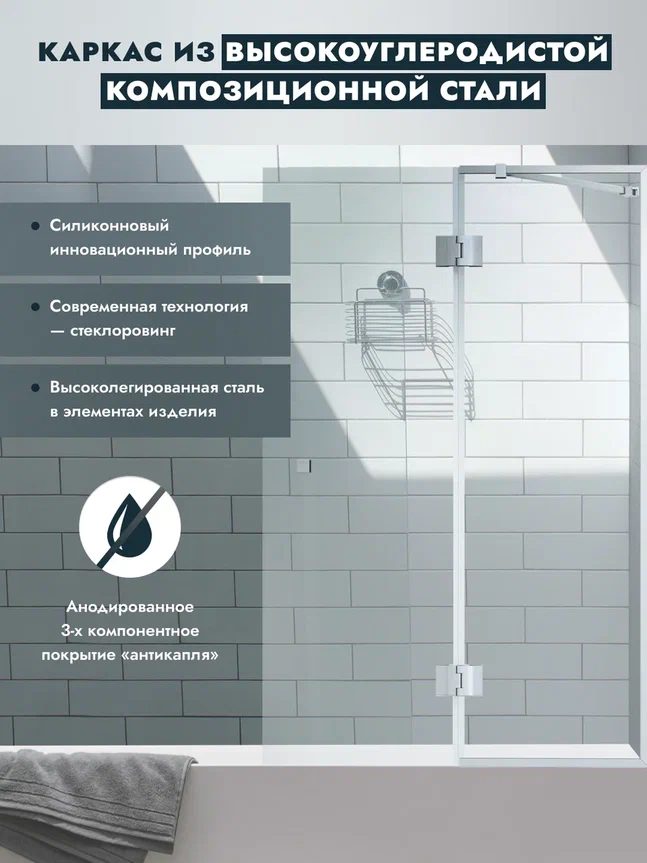 • Комплектация крепление к стенепрофиль (аллюминиевый п-образный установочный на ванну)уплотнители