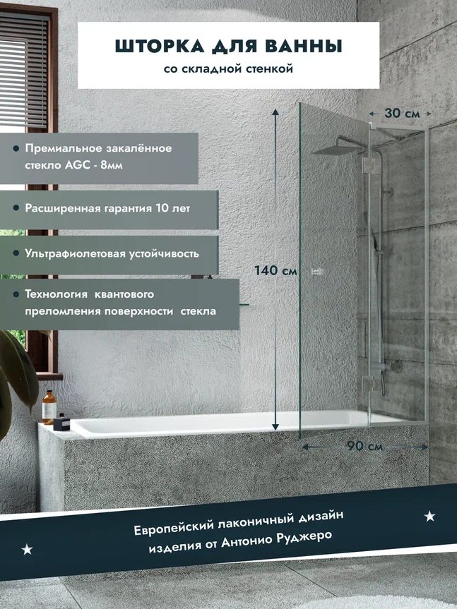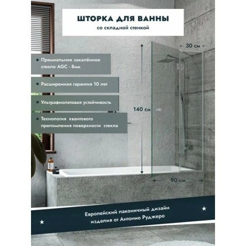 Шторка на ванну стеклянная BENETTO 1400х900 (300-600) BEN401SL