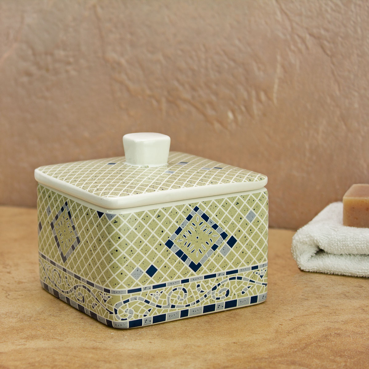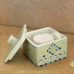 Баночка для ватных дисков - это не просто удобная вещь, а самое настоящее украшение ванной комнаты. Контейнер для ватных дисков выполнен из керамики и снабжен удобной крышечкой. Такое оформление аксессуара смотрится стильно и необычно. Теперь можно пользоваться ватными дисками с комфортом, а также получать от этого эстетическое удовольствие. Вы сможете придать своей ванной комнате неповторимый вид. Стильный дизайн. Крышка в комплекте обеспечивает гигиеничность.