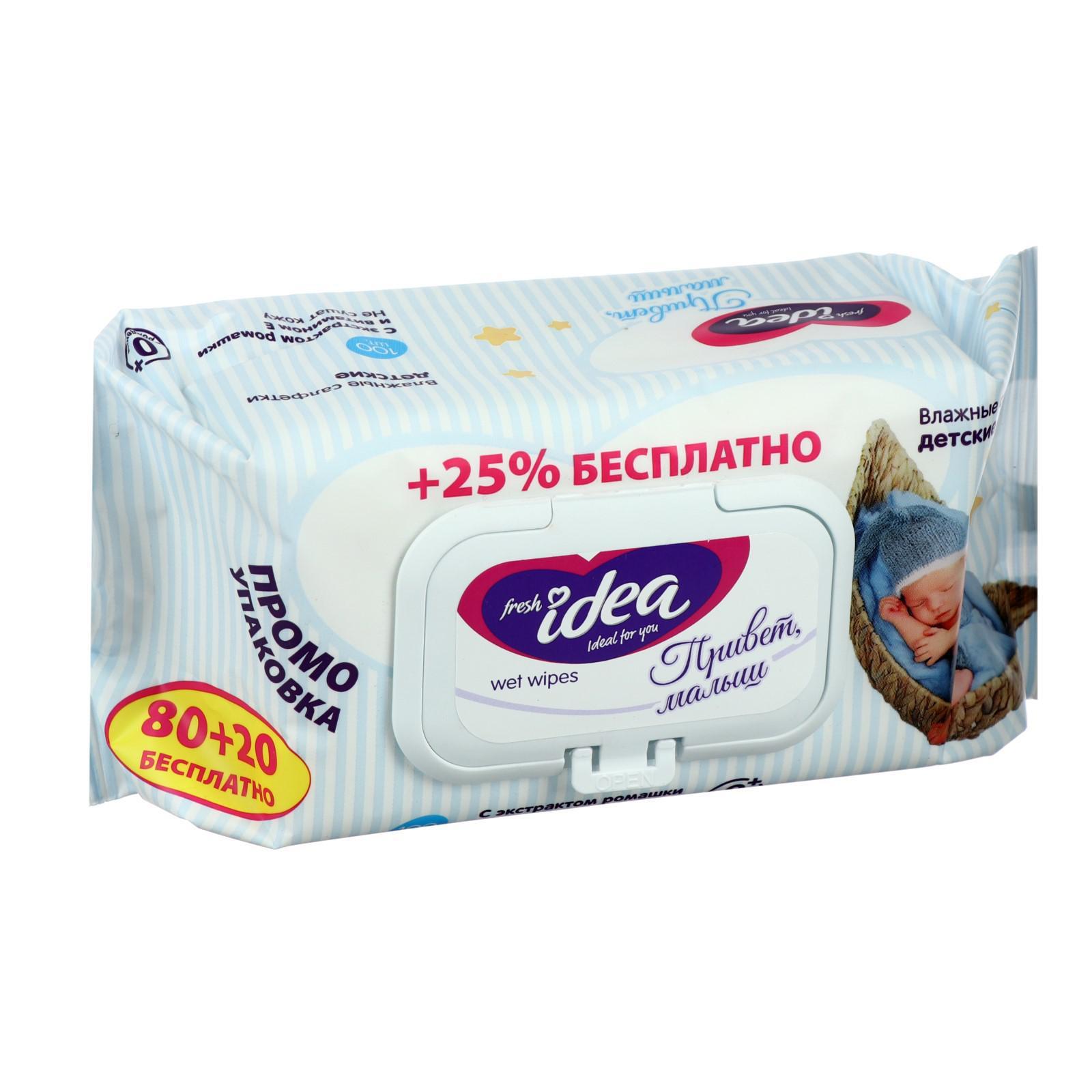 Влажные салфетки, Fresh idea "Привет малыш", 80+20 шт.