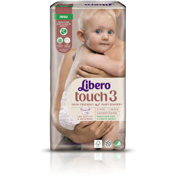 Труси Libero Touch – це наші найкращі підгузки-трусики, створені для малюків, які починають активно рухатися. Попри те, що трусики тонкі, вони ефективно поглинають вологу.