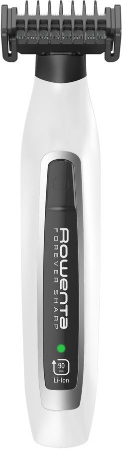 Триммер Rowenta TN-6010 Forever Sharp - универсальное устройство 3 в 1, при помощи которого вы сможете подравнять, придать нужную форму или сбрить бороду. Для этого в комплектацию модели включены три насадки, обеспечивающие длину стрижки 1, 3 или 5 мм. Самозатачивающиеся лезвия изготовлены из 100% нержавеющей стали, гарантирующей как непревзойденное качество бритья, так и длительный срок службы устройства. Полную свободу действий в процессе ухода за бородой дарит автономная работа (до 120 минут) триммера от литий-ионного аккумулятора. Неоспоримым плюсом триммера Rowenta TN-6010 Forever Sharp стала поддержка быстрой зарядки: уже через четыре минуты после старта зарядки емкости аккумулятора будет достаточно для одного полного использования. Дополнительному удобству при эксплуатации устройства способствует возможность зарядки не только от сети, но и через USB. 100% водонепроницаемость и поддержка технологии Wet&Dry позволят мыть съемные лезвия под проточной водой.