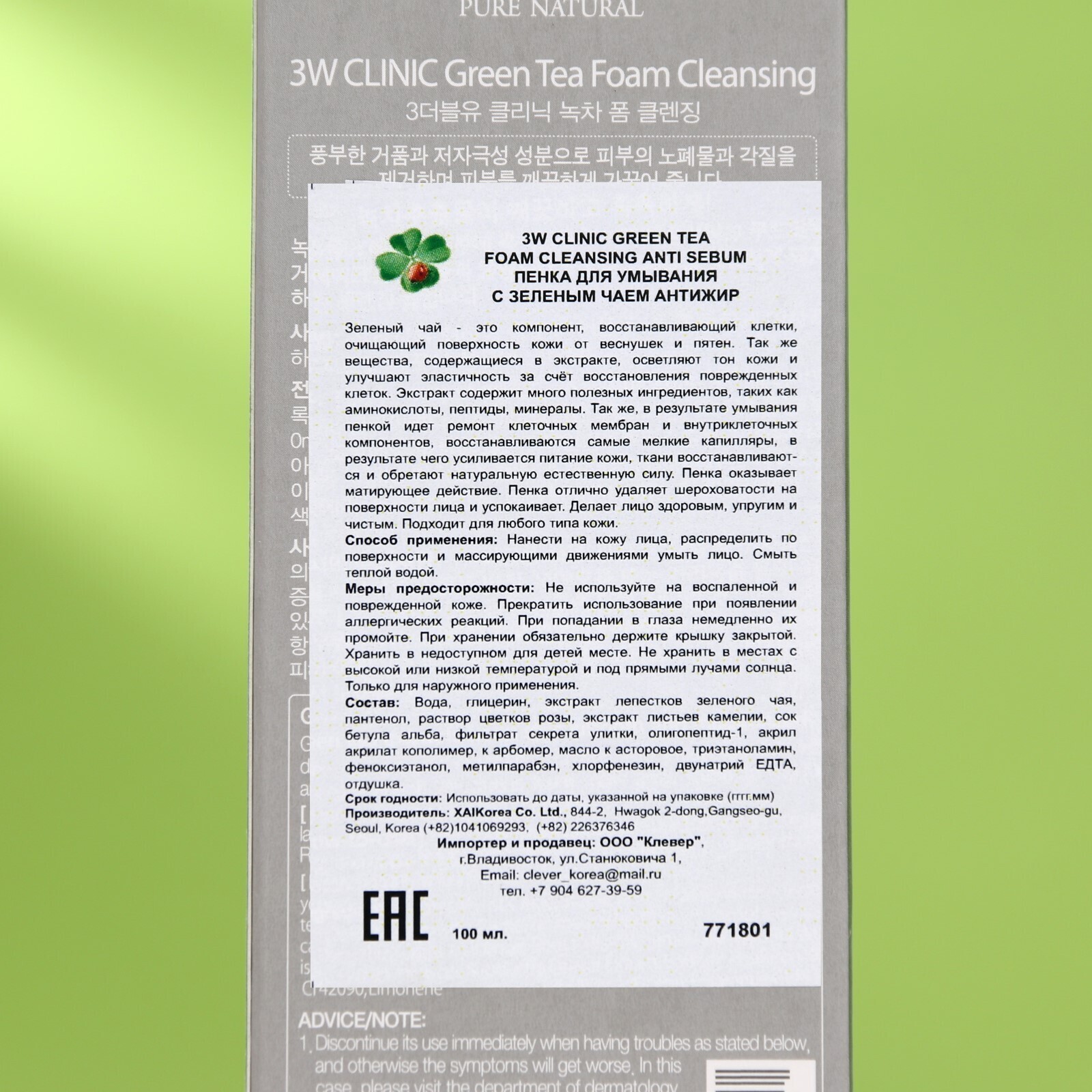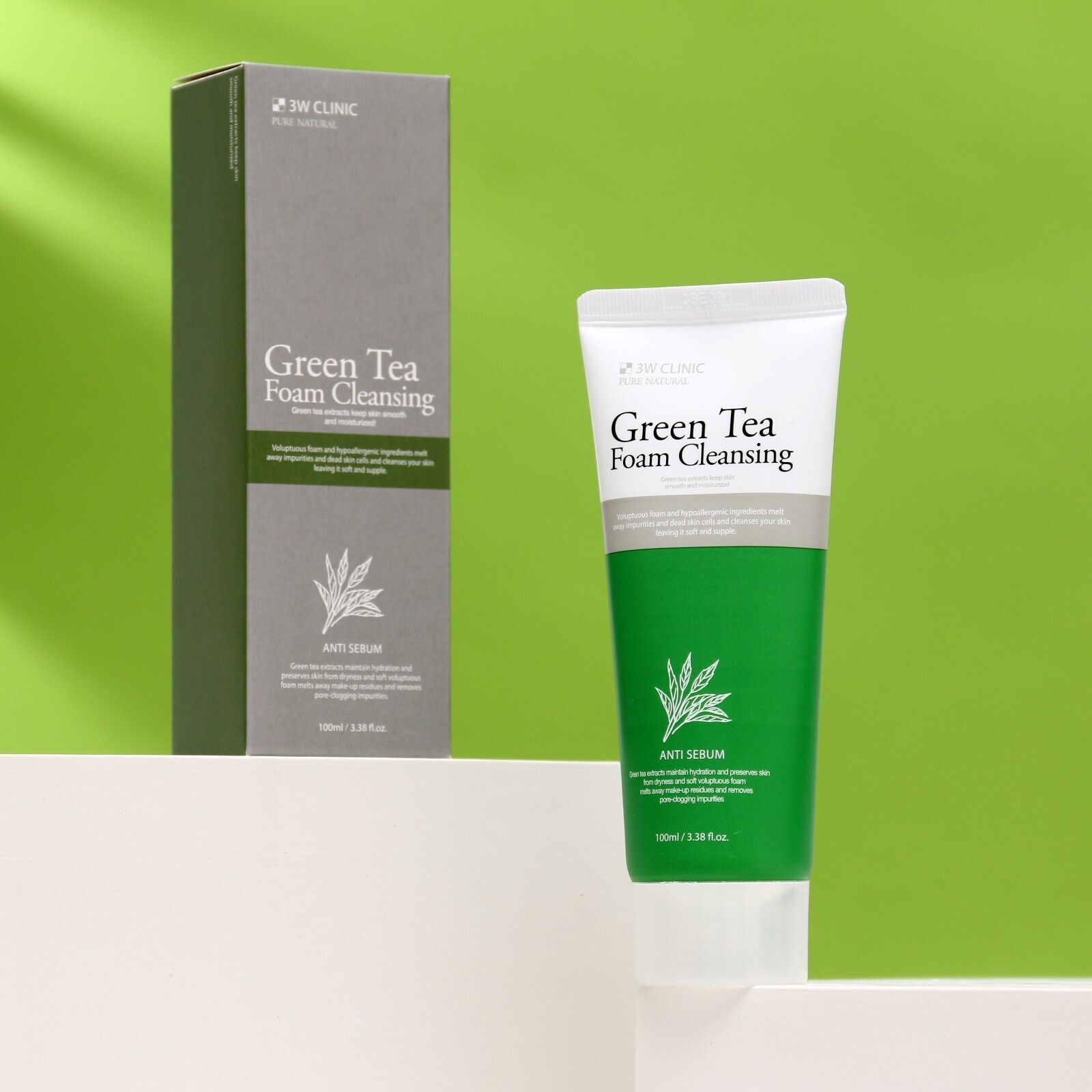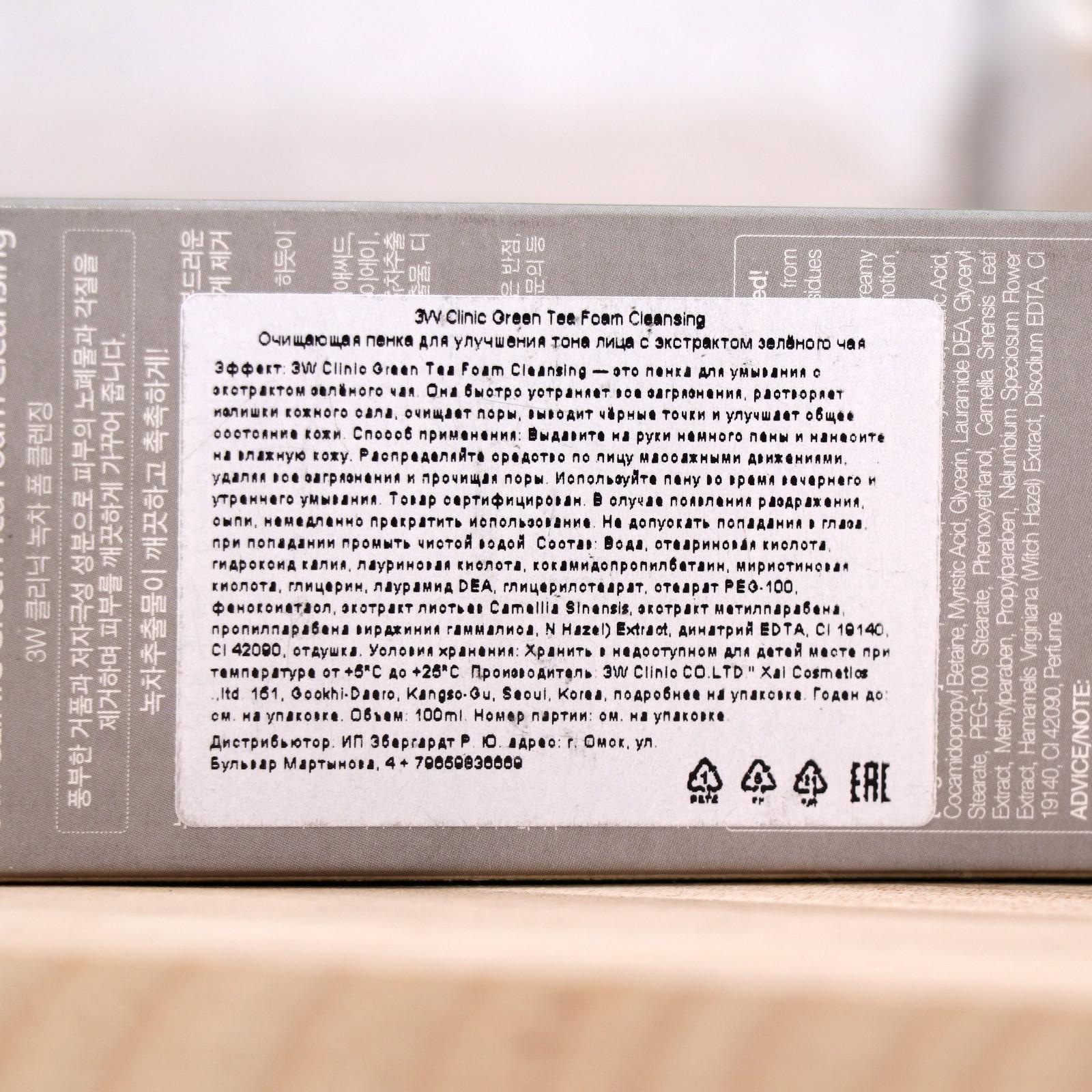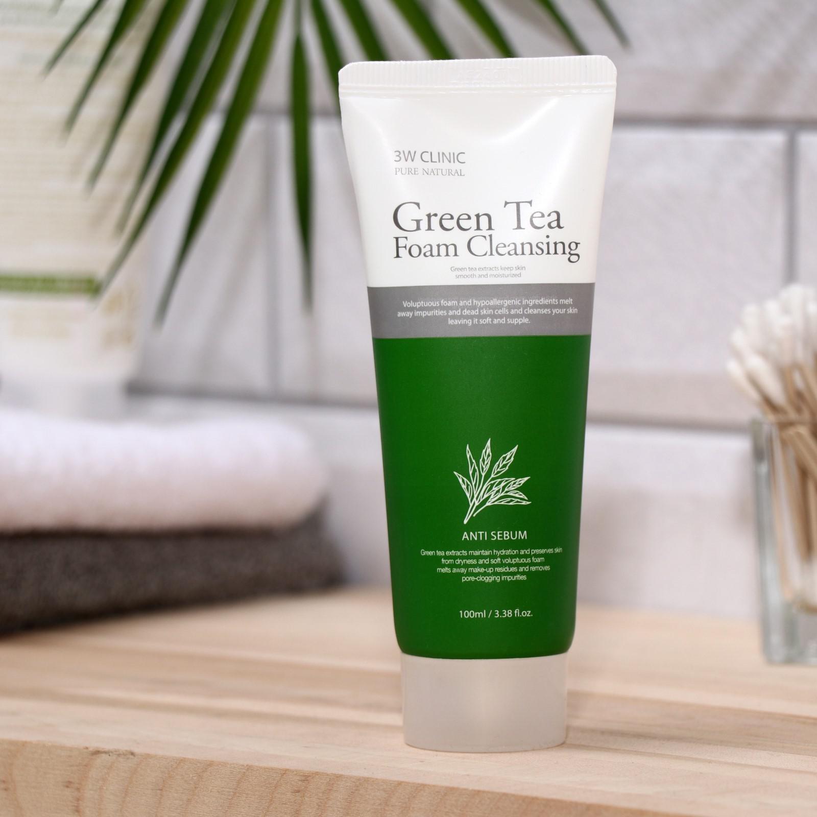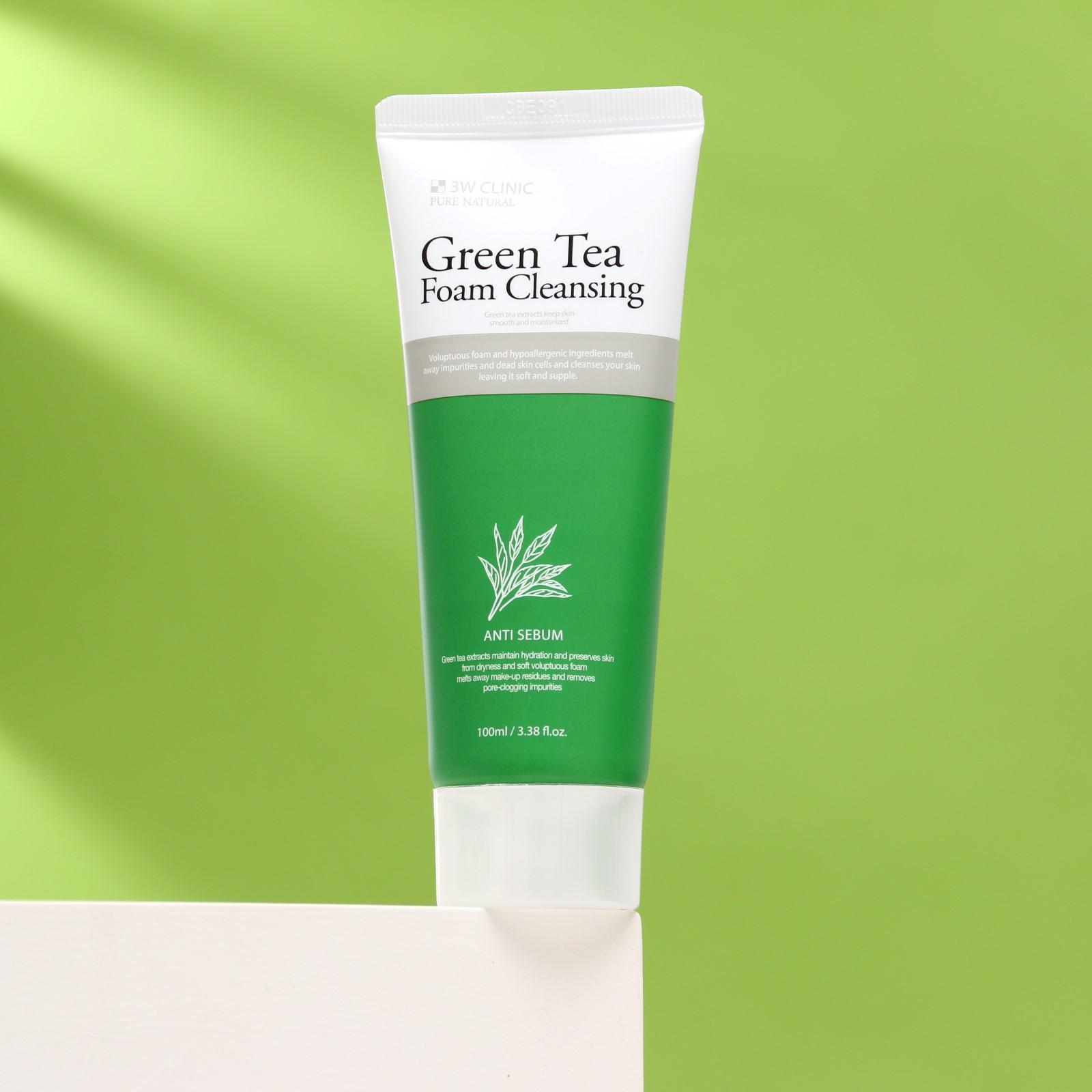 Очищающая пенка 3W CLINIC для улучшения тона лица с экстрактом зелёного чая, 100 мл