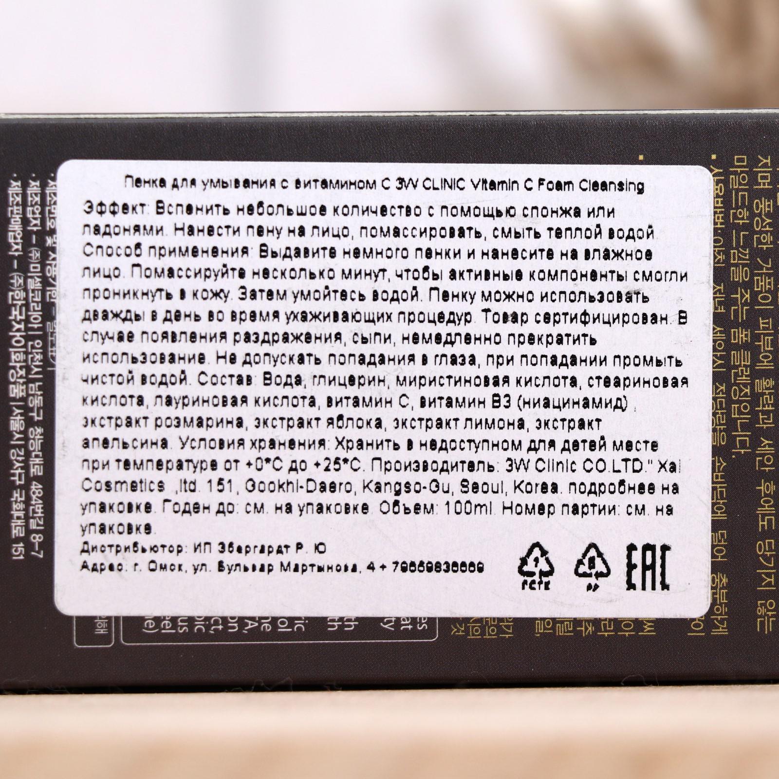 3W Clinic Тонизирующая пенка с витамином Vitamin C Foam Cleansing, 100 мл