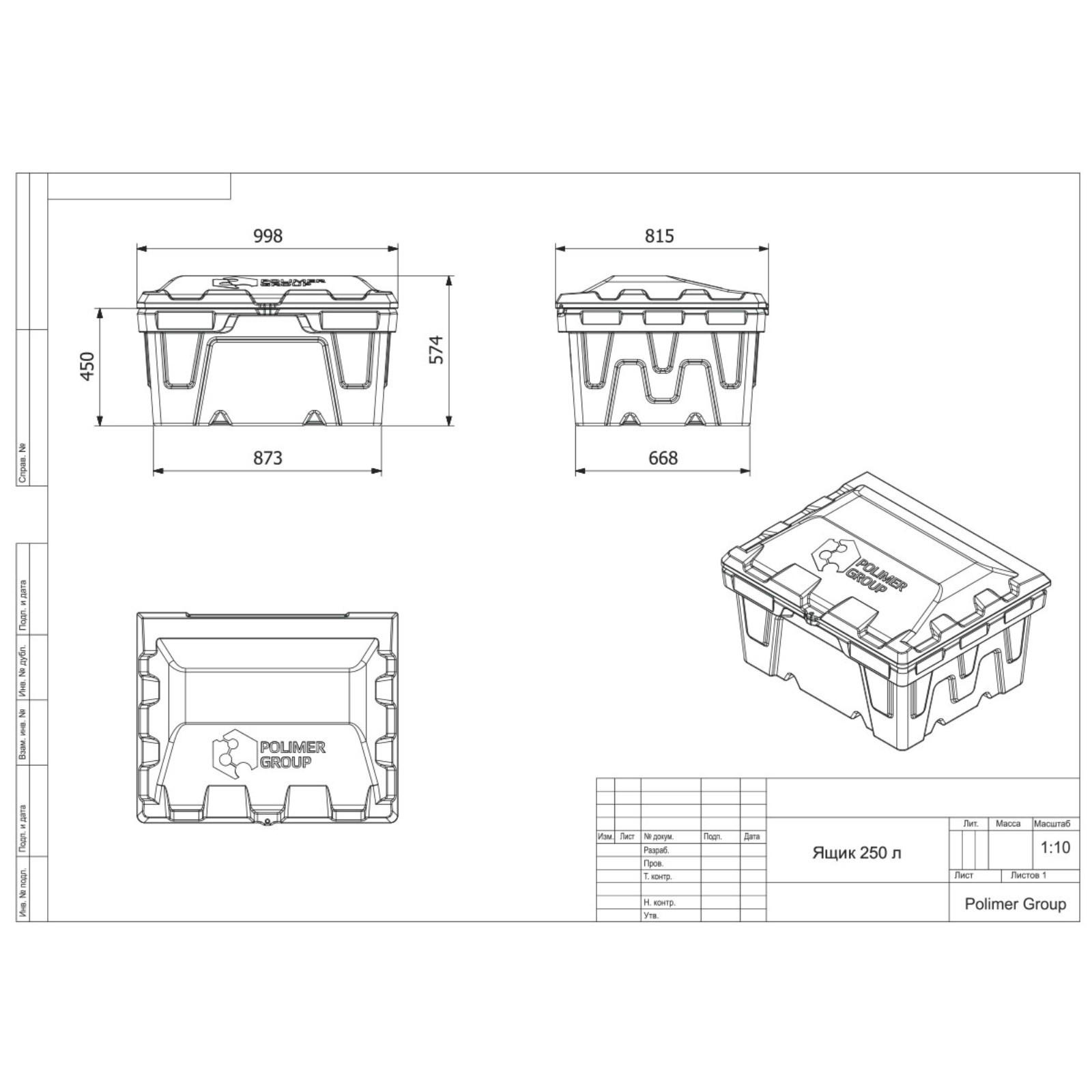 Ящик с крышкой, 250 л, для песка, соли, реагентов, цвет серый