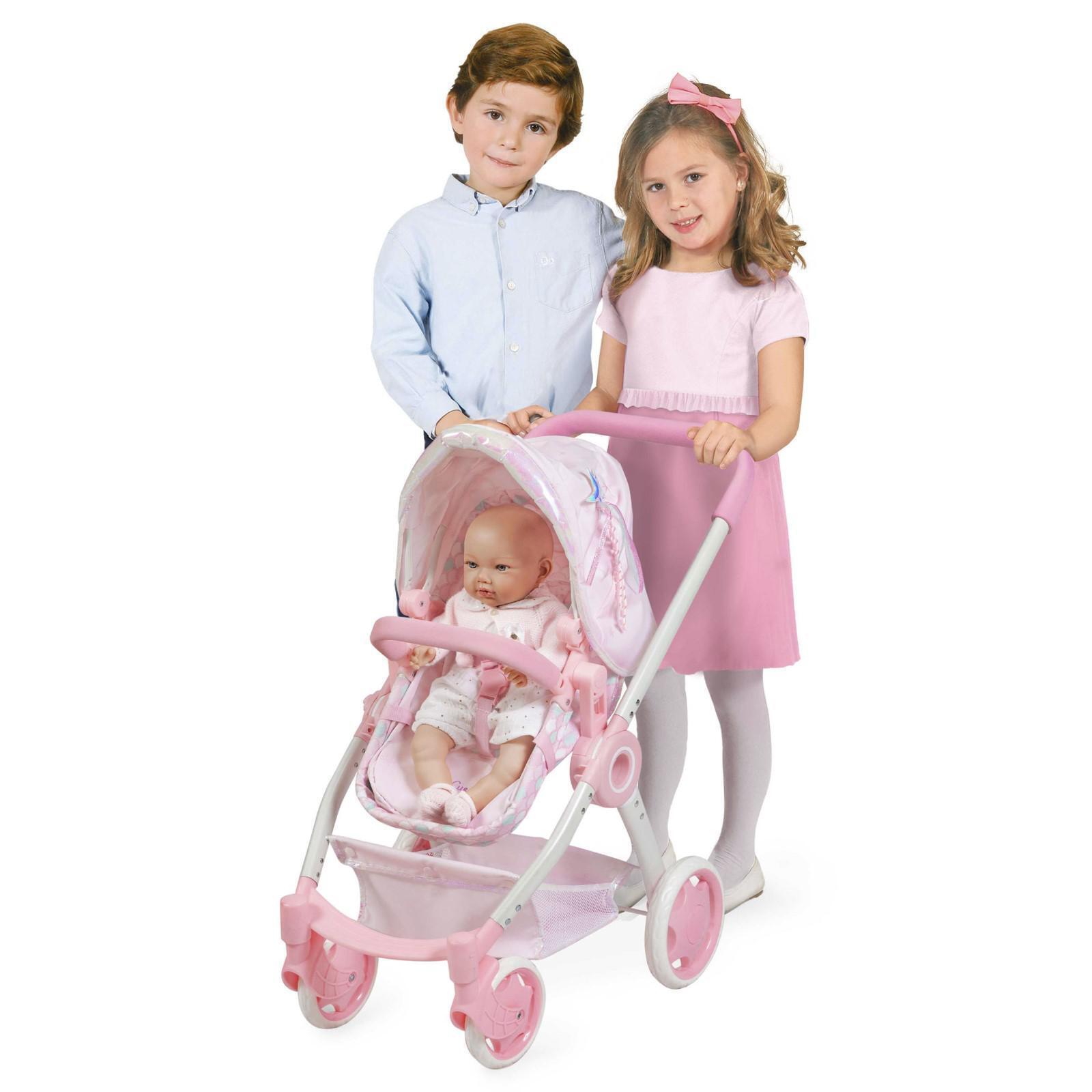 Коляска для кукол трансформер 3 в 1 испанского бренда Decuevas, высота ручки от пола 70 см, удобна для ребенка ростом 105-140 см, ручка не регулируется.