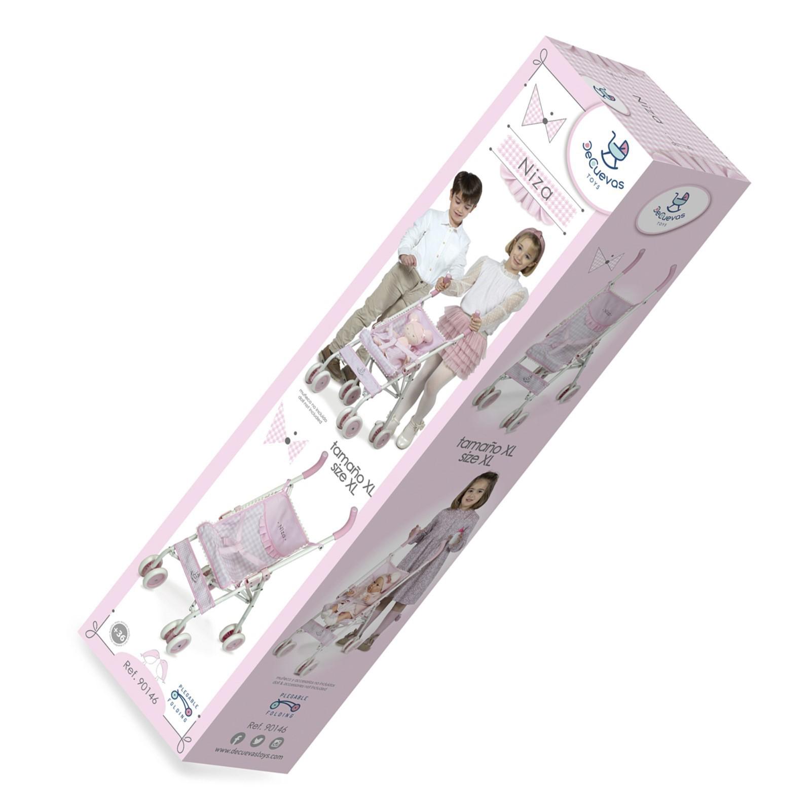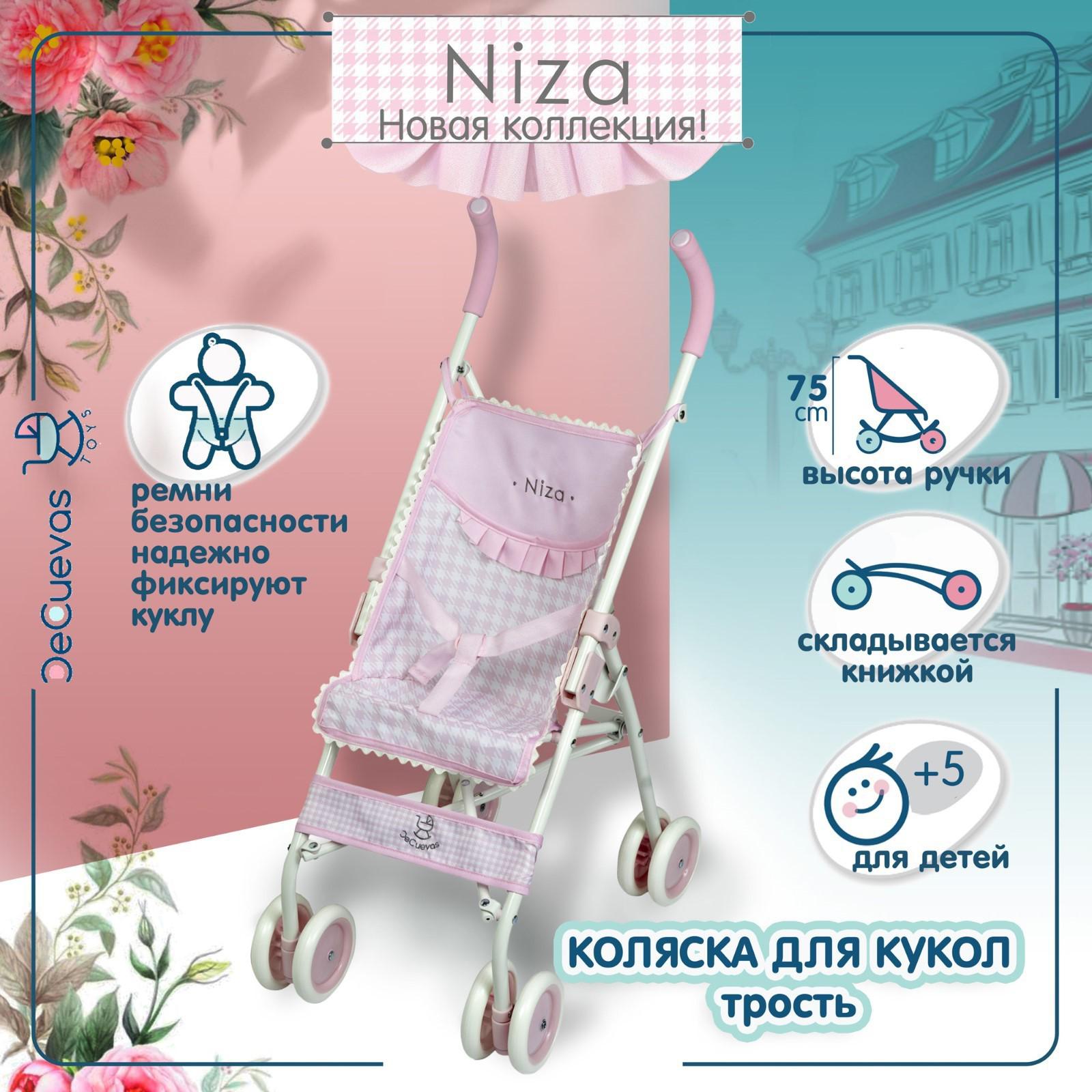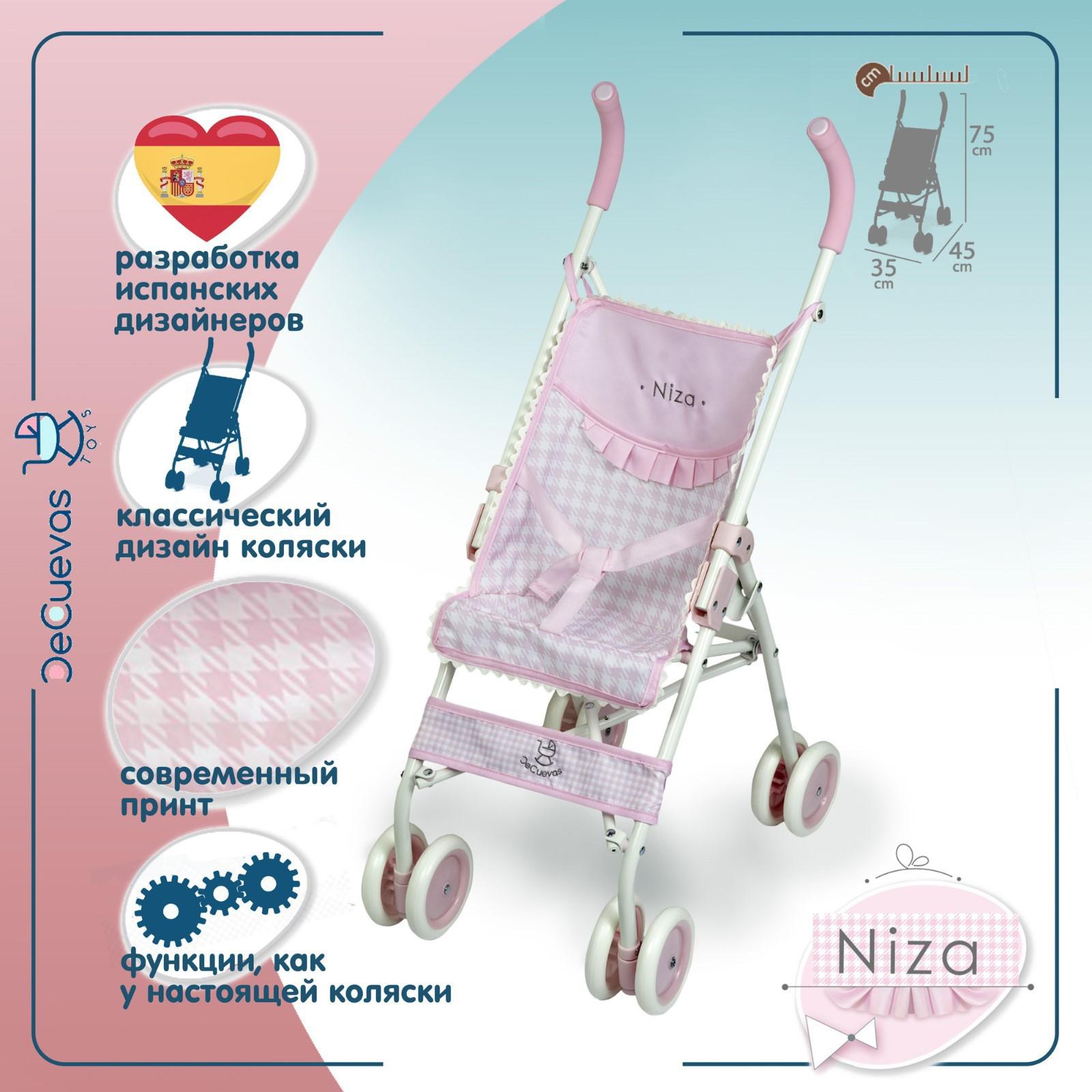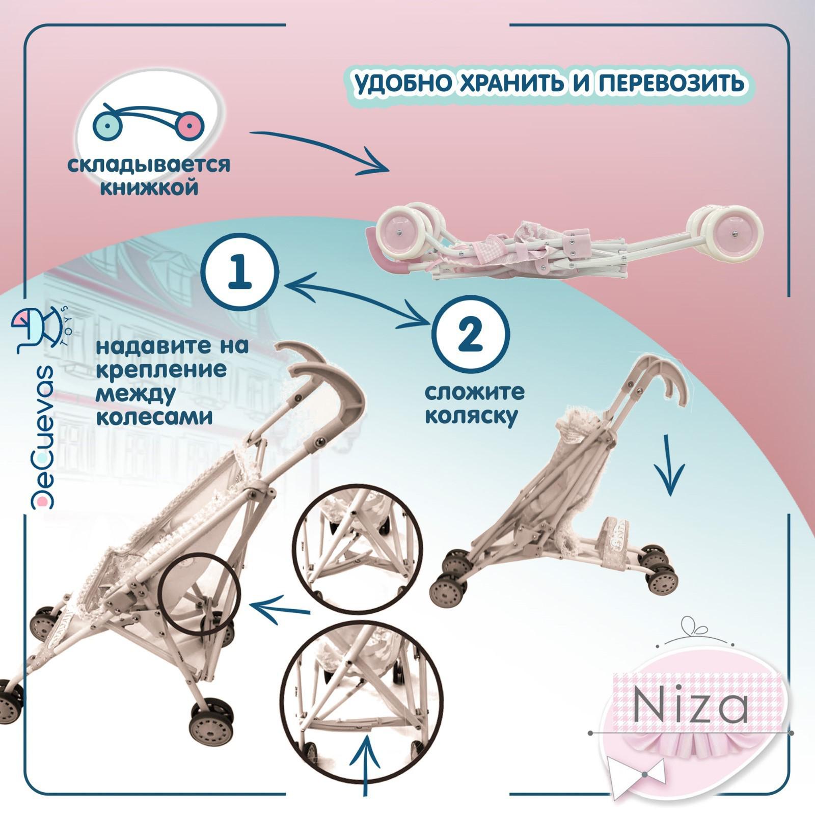 Коляска для кукол люлька испанского бренда DeCuevas Toys, со съёмной прозрачной сумкой. Высота ручки от пола 75 см, подойдет для девочек от 5 до 10 лет.