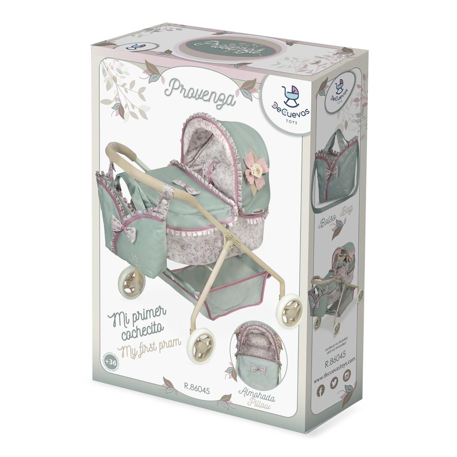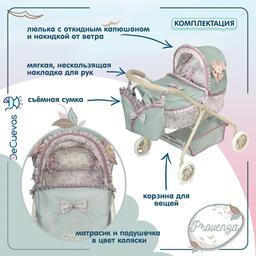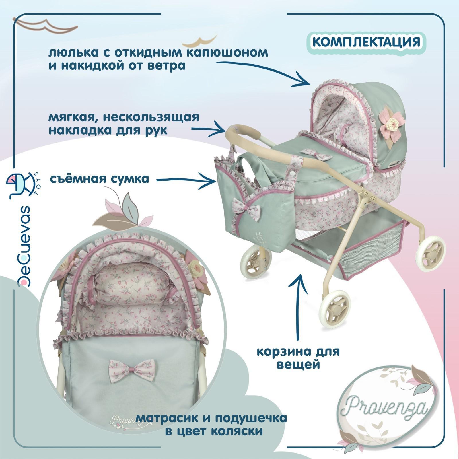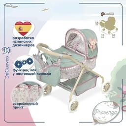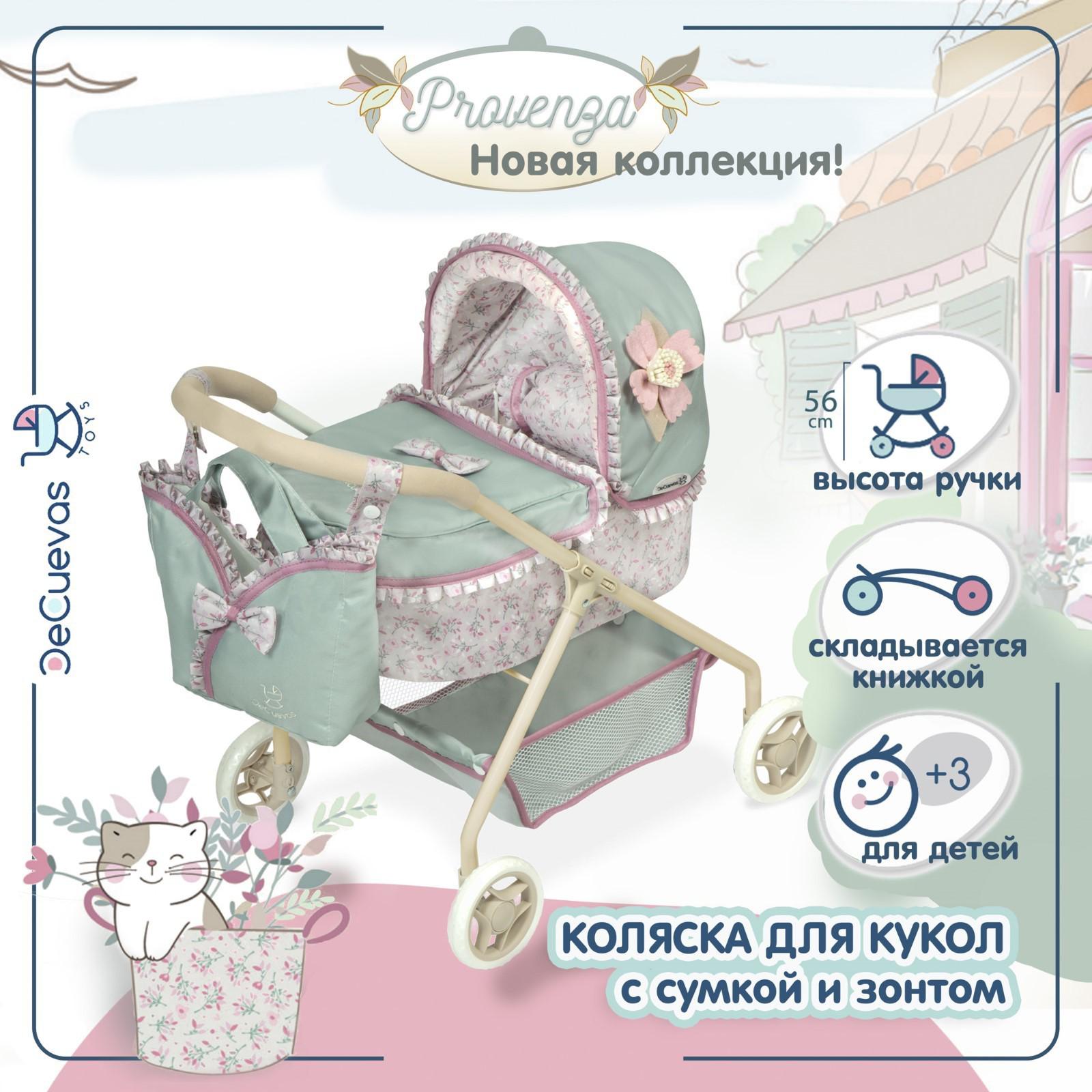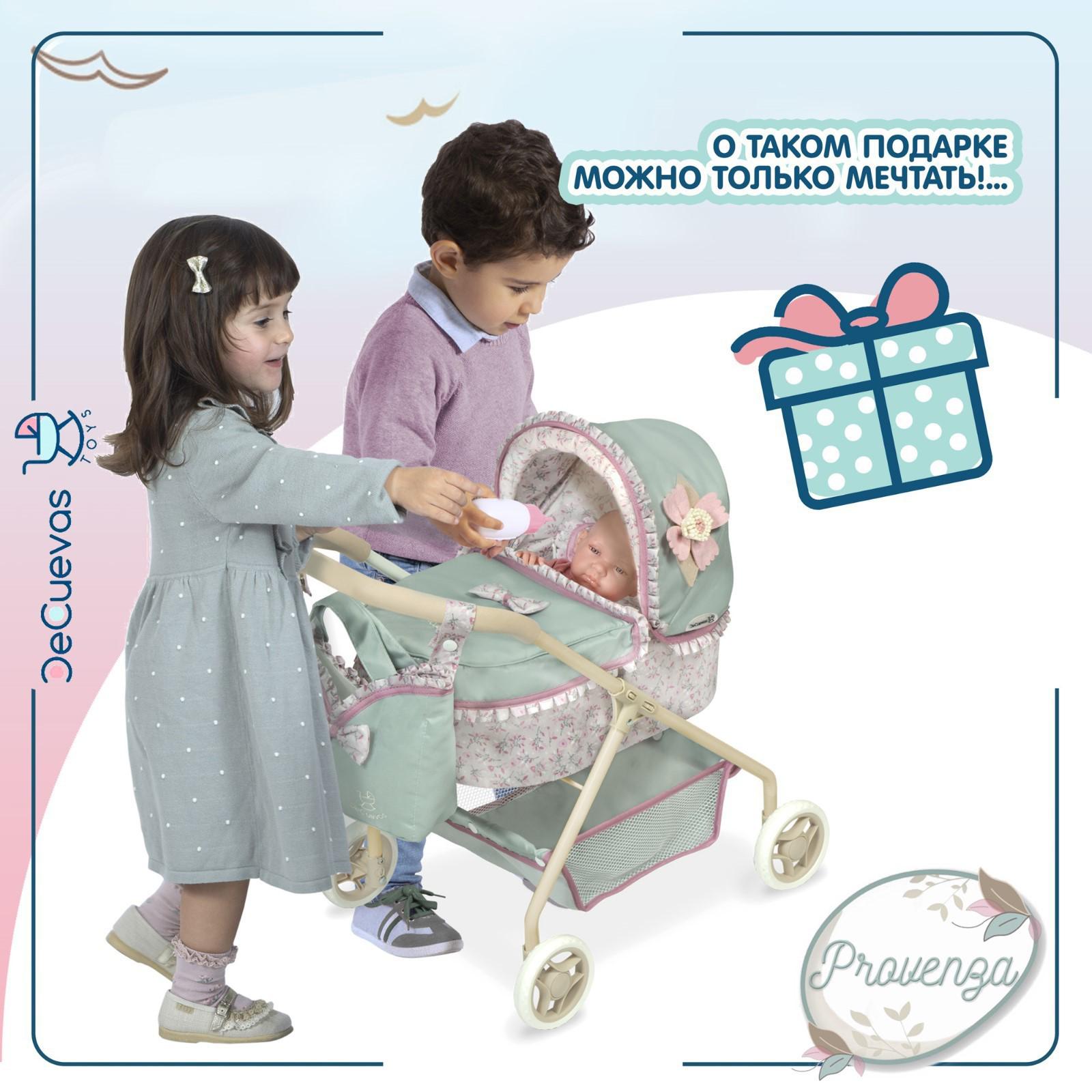 Коляска для кукол люлька испанского бренда DeCuevas Toys, со съёмной сумкой и корзиной для покупок. Высота ручки от пола 56 см, подойдет для девочек от 3 до 7 лет.