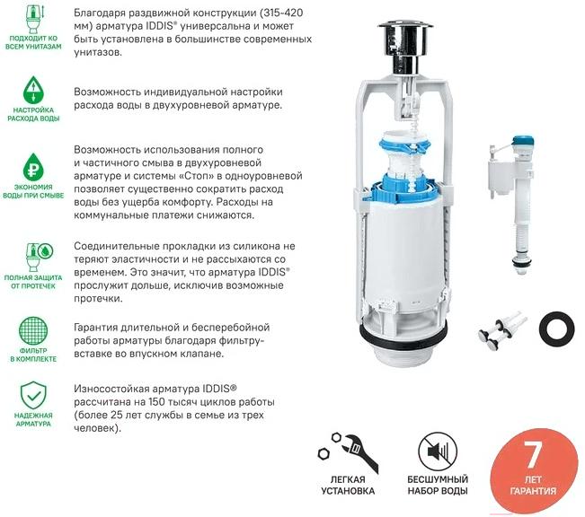 • Комплектация арматура спускная, арматура наполнительная, прокладка, крепеж, паспорт