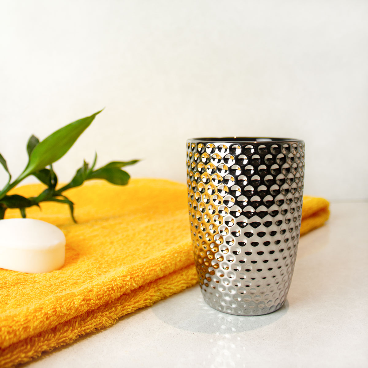 Керамический стакан будет гармонично смотреться на столешнице или раковине в ванной современного или классического стиля.Данный аксессуар выполнен из керамики. Керамическая поверхность легко очищается и моется. В стакане для ванной комнаты можно хранить зубные щетки с пастой или же другие необходимые вещи – кисти для макияжа, расчески или бритвенные станки. Подобрав другие аксессуары в едином стиле из нашей коллекции, вы сможете придать своей ванной комнате неповторимый вид.