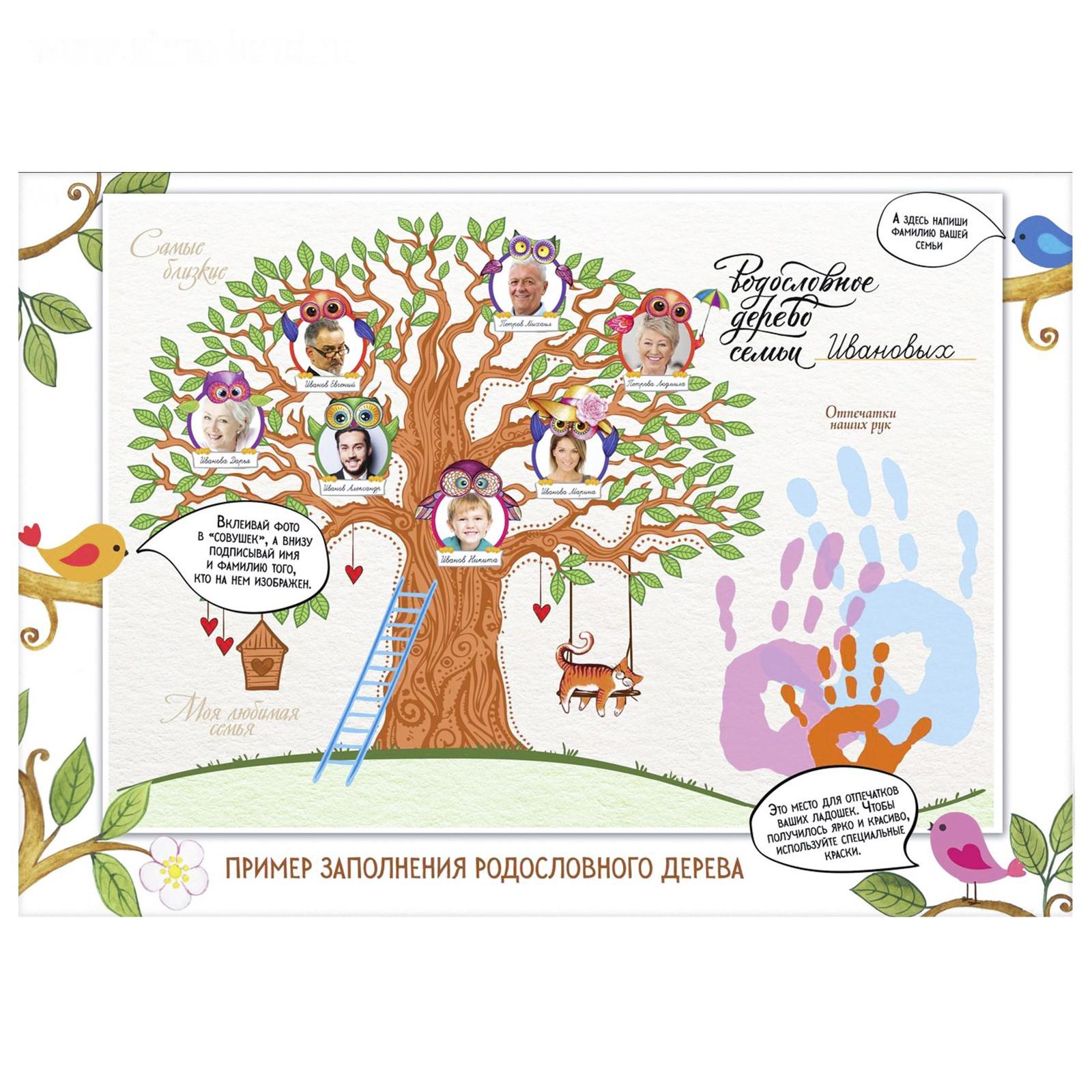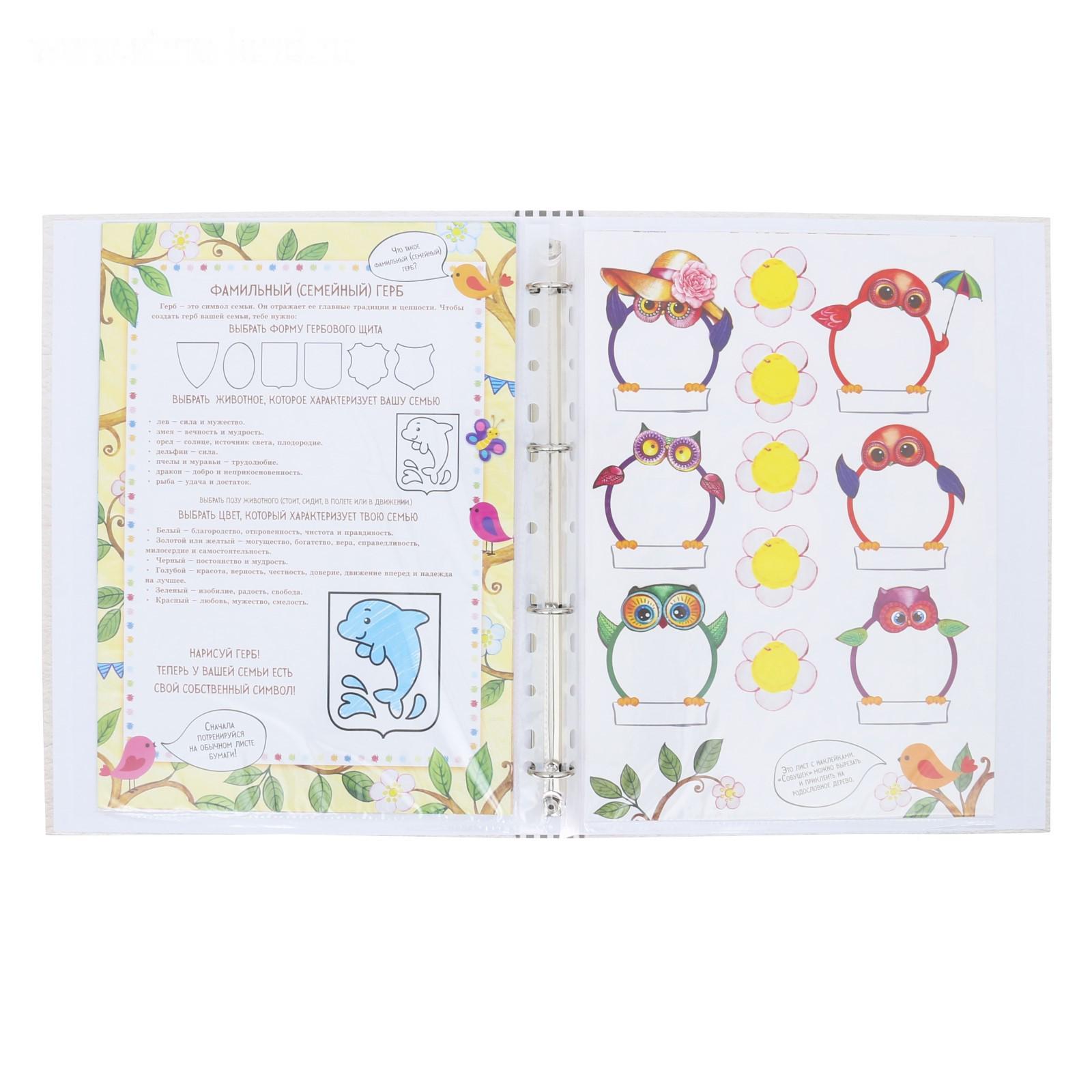 Родословная книга на кольцах в папке содержит 16 листов, лист генеалогического древа формата А2 и лист наклеек для него.