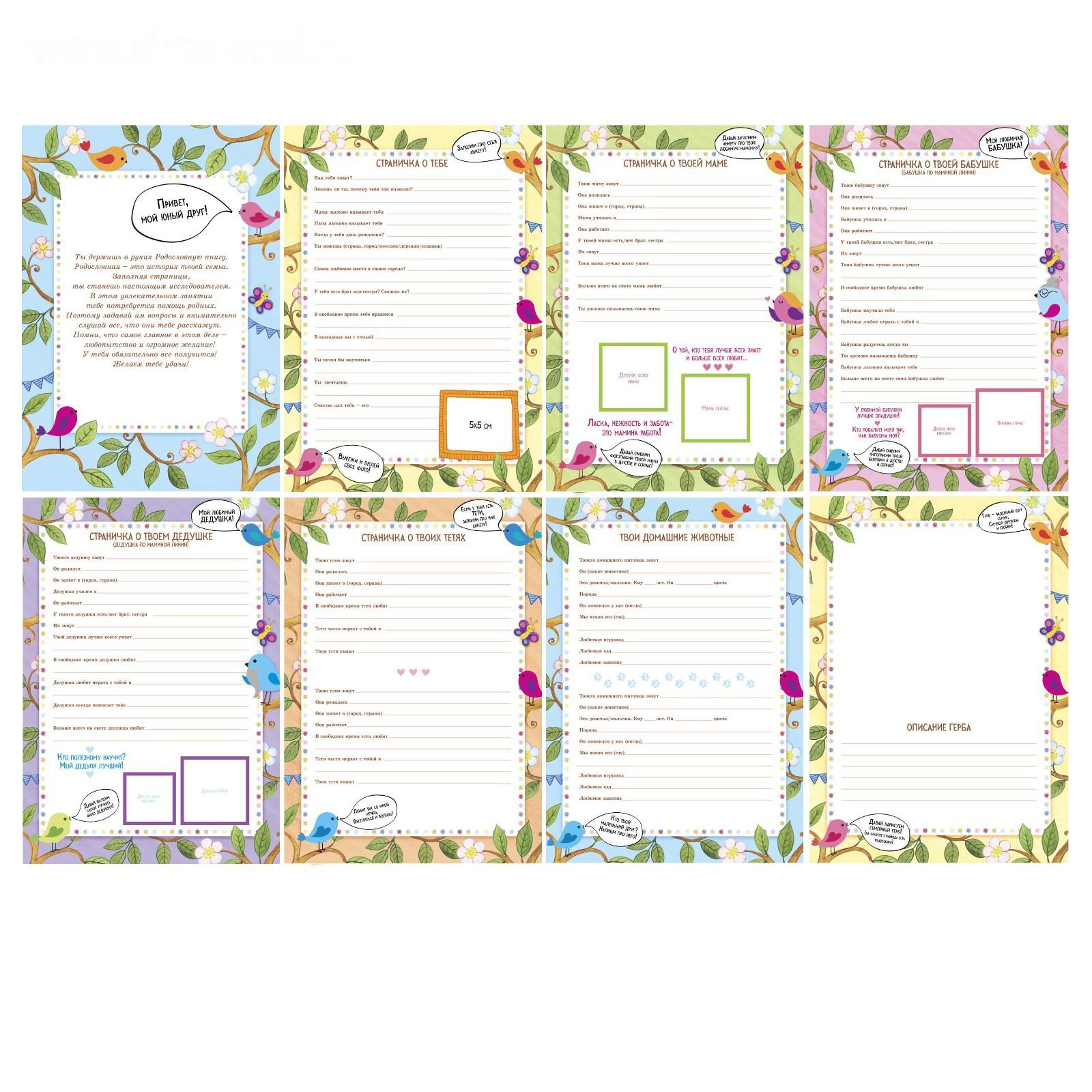 — страницы «О твоей бабушке» (по папиной и маминой линии);