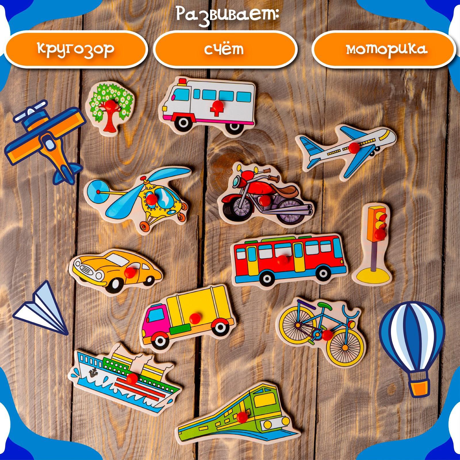 Рамка-вкладыш «Транспорт» поможет ребёнку научиться разделять фишки по категориям, а также расширит его кругозор. Малыш узнает много разных видов транспорта: наземный, воздушный, водный.