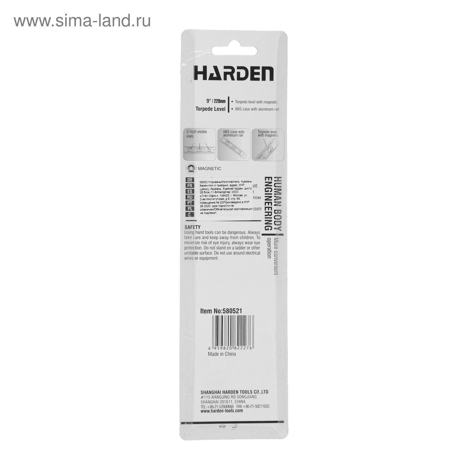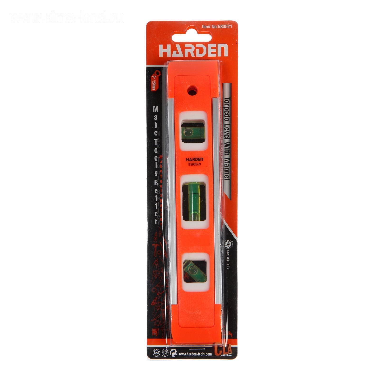 Уровень "Торпедо" HARDEN 580521, пластиковый, магнитный, 3 глазка, 228 мм