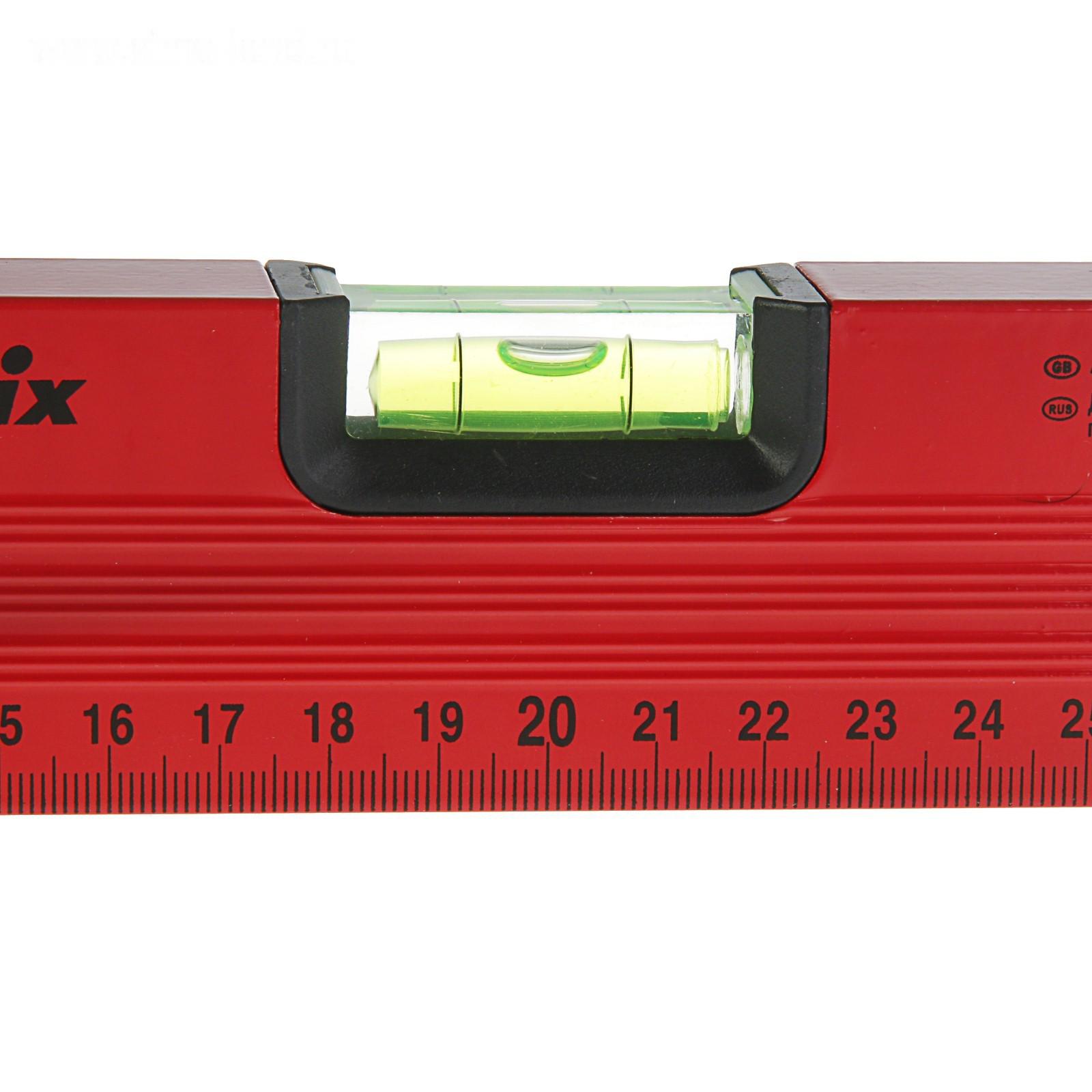 Уровень MATRIX, 40 см, алюминиевый, 3 глазка, красный, линейка