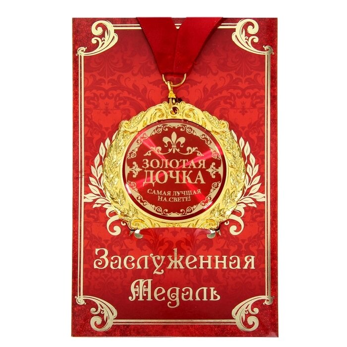 Медаль в подарочной открытке металл Золотая дочка", d=7см