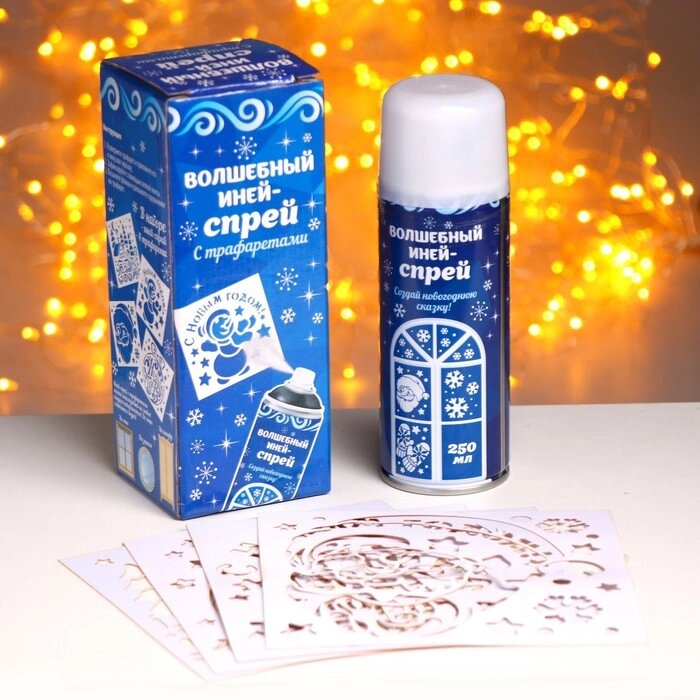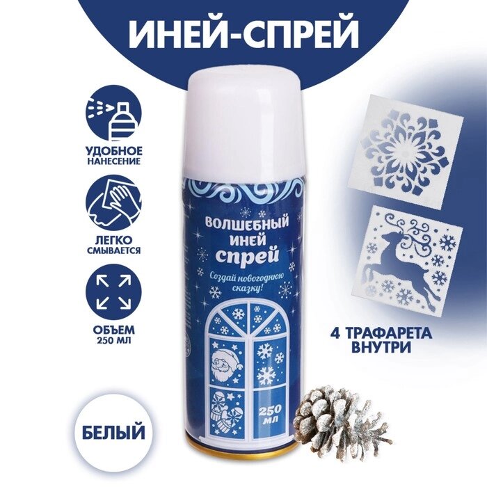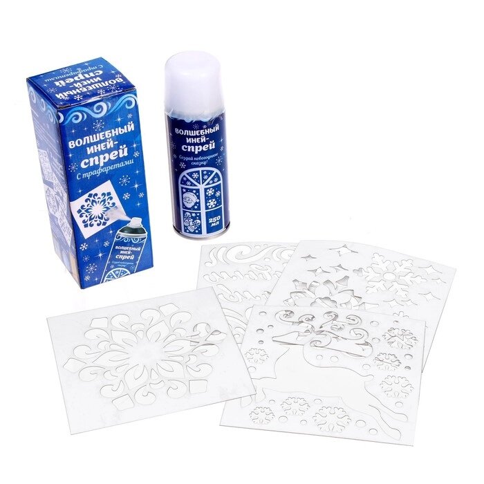 Спрей "Иней. Искристые снежинки", с трафаретами, цвет белый