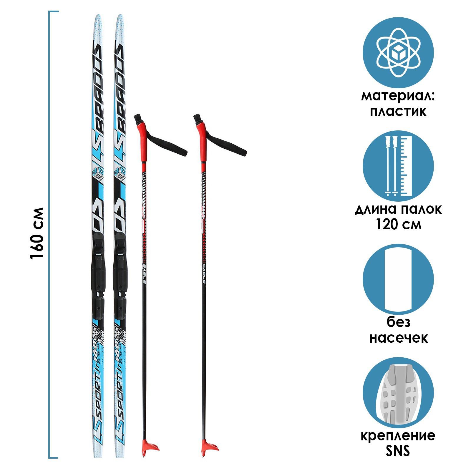 Комплект лыжный: пластиковые лыжи 160 см без насечек, стеклопластиковые палки 120 см, крепления SNS «БРЕНД ЦСТ»