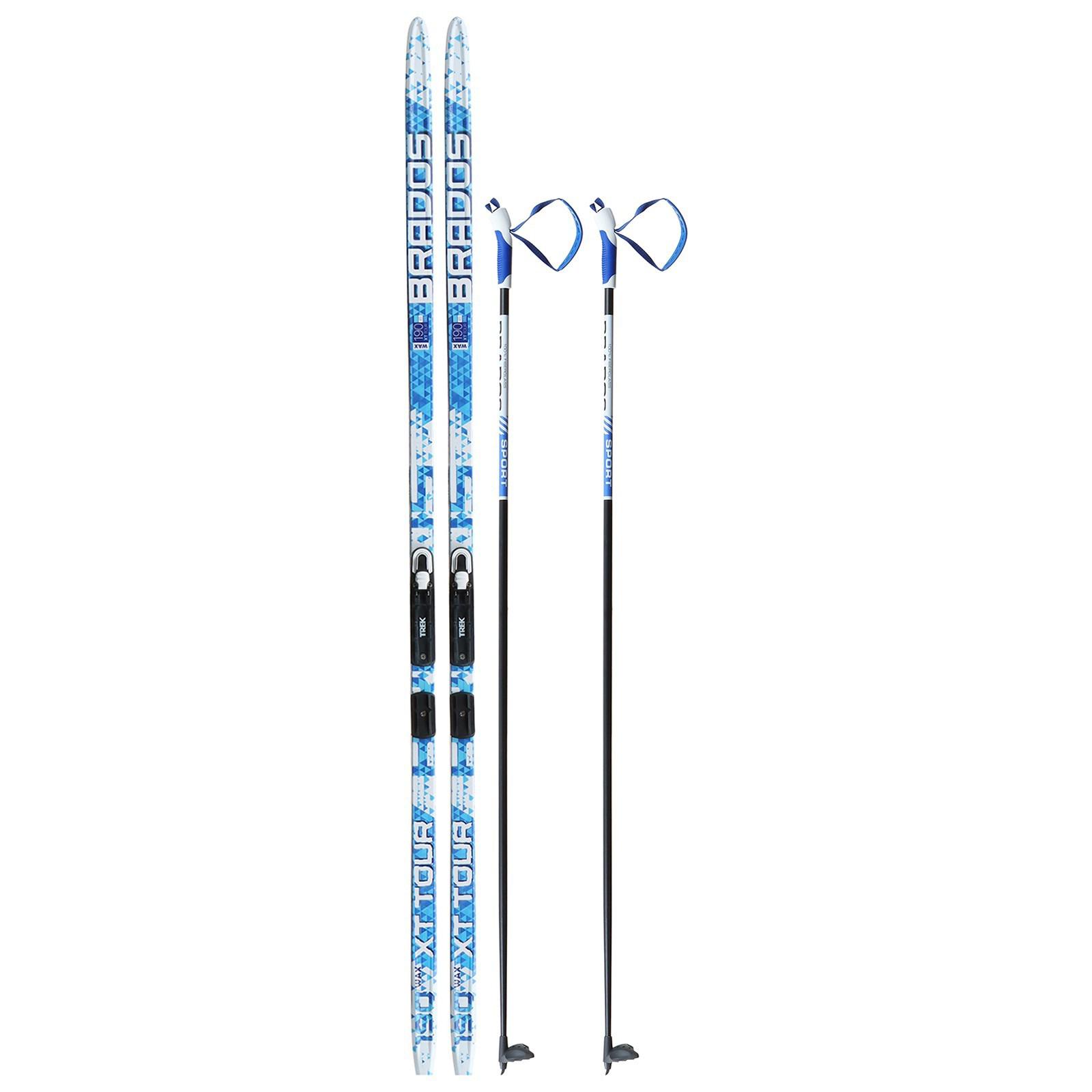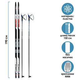 Комплект лыжный: пластиковые лыжи 190 см без насечек, стеклопластиковые палки 150 см, крепления NNN «БРЕНД ЦСТ», цвета микс