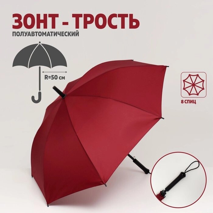 Зонт жен трость п/авт R50 8спиц П/Э Однотонный руч прям эргоном бордовый пакет