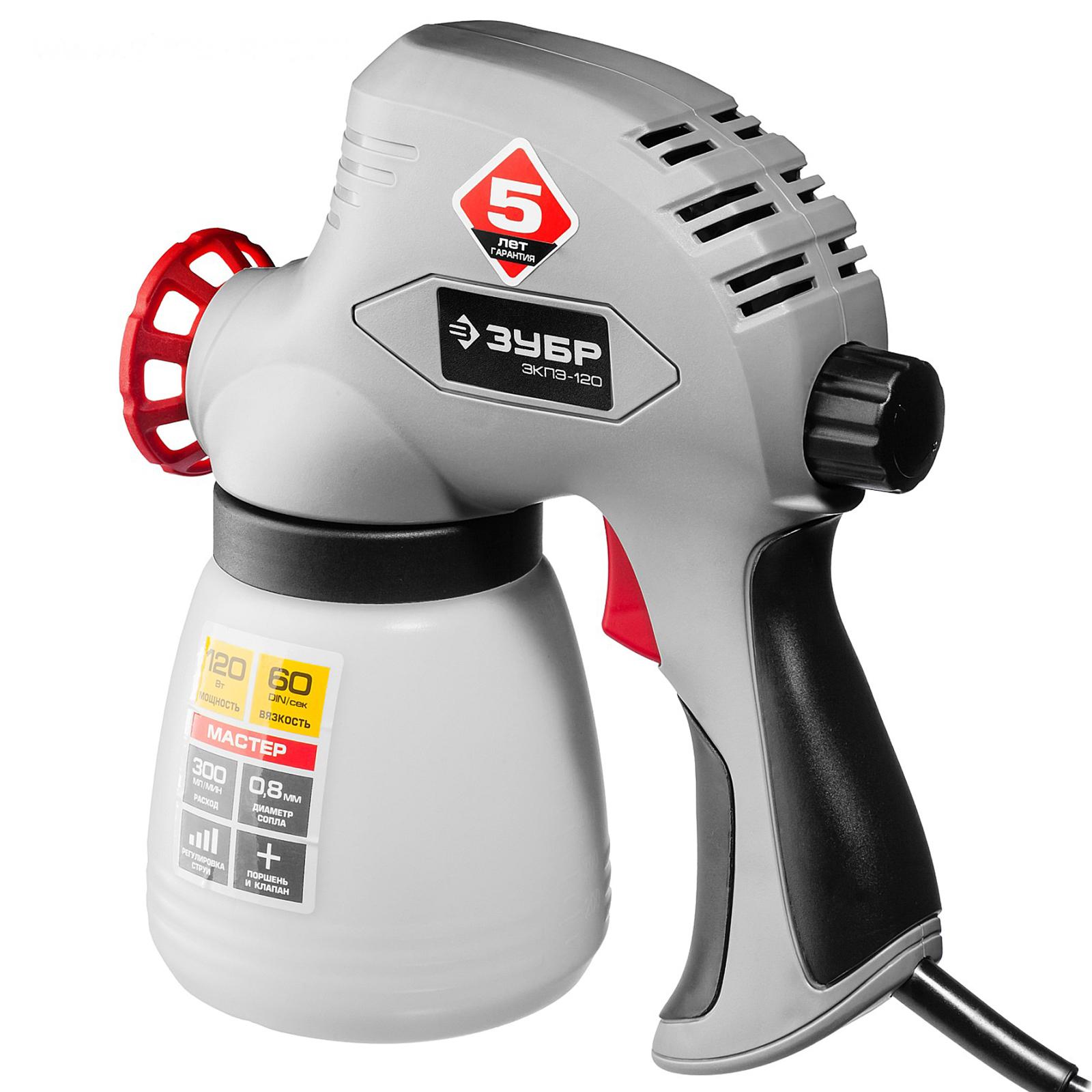 Краскопульт "ЗУБР" ЗКПЭ-120, электрический, 120 Вт, 300 мл/мин, вязкость 60 DIN, 0.8 л