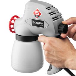 Краскопульт " ЗУБР " - универсальный инструмент для нанесения большинства лакокрасочных материалов и выполнения разнообразных работ. Теперь стало просто и быстро окрасить поверхность, обработать антисептиком, покрыть лаком, нанести узоры. Исключение затрат на расходные материалы (валики, кисти), уменьшение расхода наносимого материала, отсутствие разводов и потёков, существенное ускорение работы - главные преимущества использования краскопультов " ЗУБР ". Краскопульт электрический предназначен для нанесения красок, лаков и иных растворимых материалов соответствующей вязкости на различные поверхности.