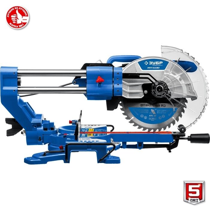 Пила торцовочная ЗУБР ППТ-255-П с протяжкой, 220 В, 1800 Вт, d=255х30 мм, 90°45°90/40 мм