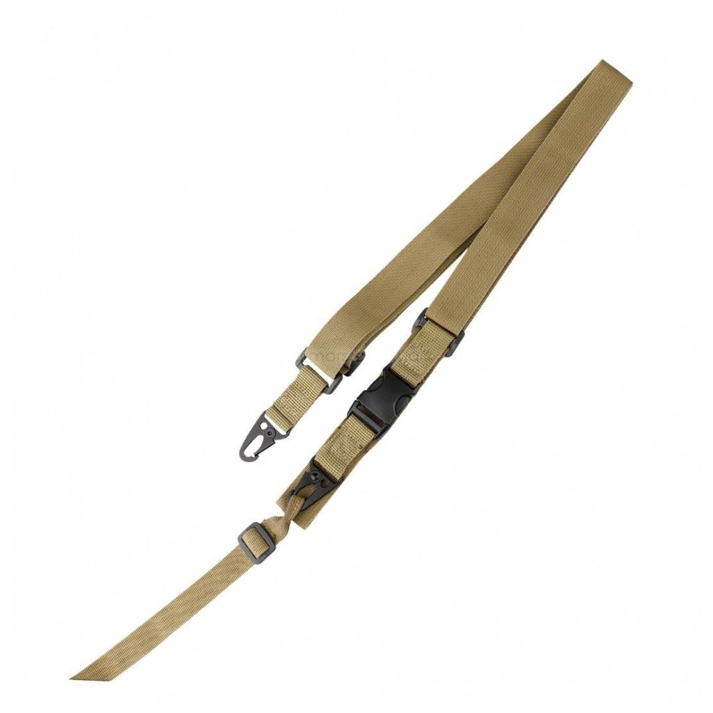 Тактичний триточковий збройовий ремінь кріпиться на зброю у двох точках, а середня точка кріплення є плаваючою. Що є великою перевагою при швидкому скиданні або зміні зброї, а також дозволить звільнити руки під час перезаряджання. Це основна відмінність від звичайних двоточкових ременів.