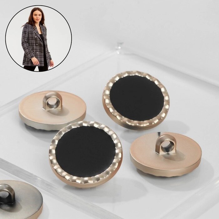 Набор пластиковых пуговиц на ножке, d = 25 мм, 5 шт, цвет чёрный