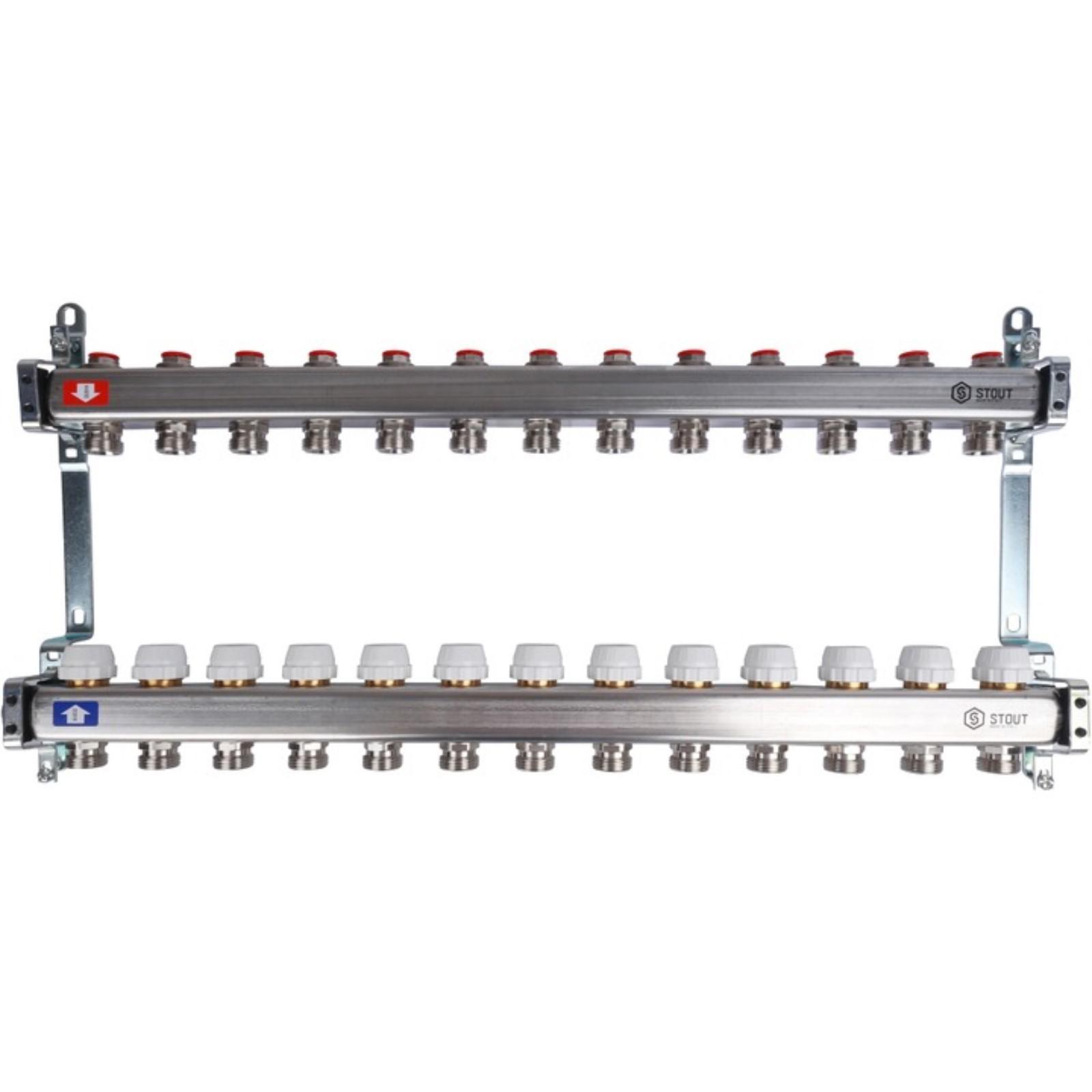 Коллекторная группа STOUT, 1"х3/4", 13 выходов, без расходомеров, нержавеющая сталь