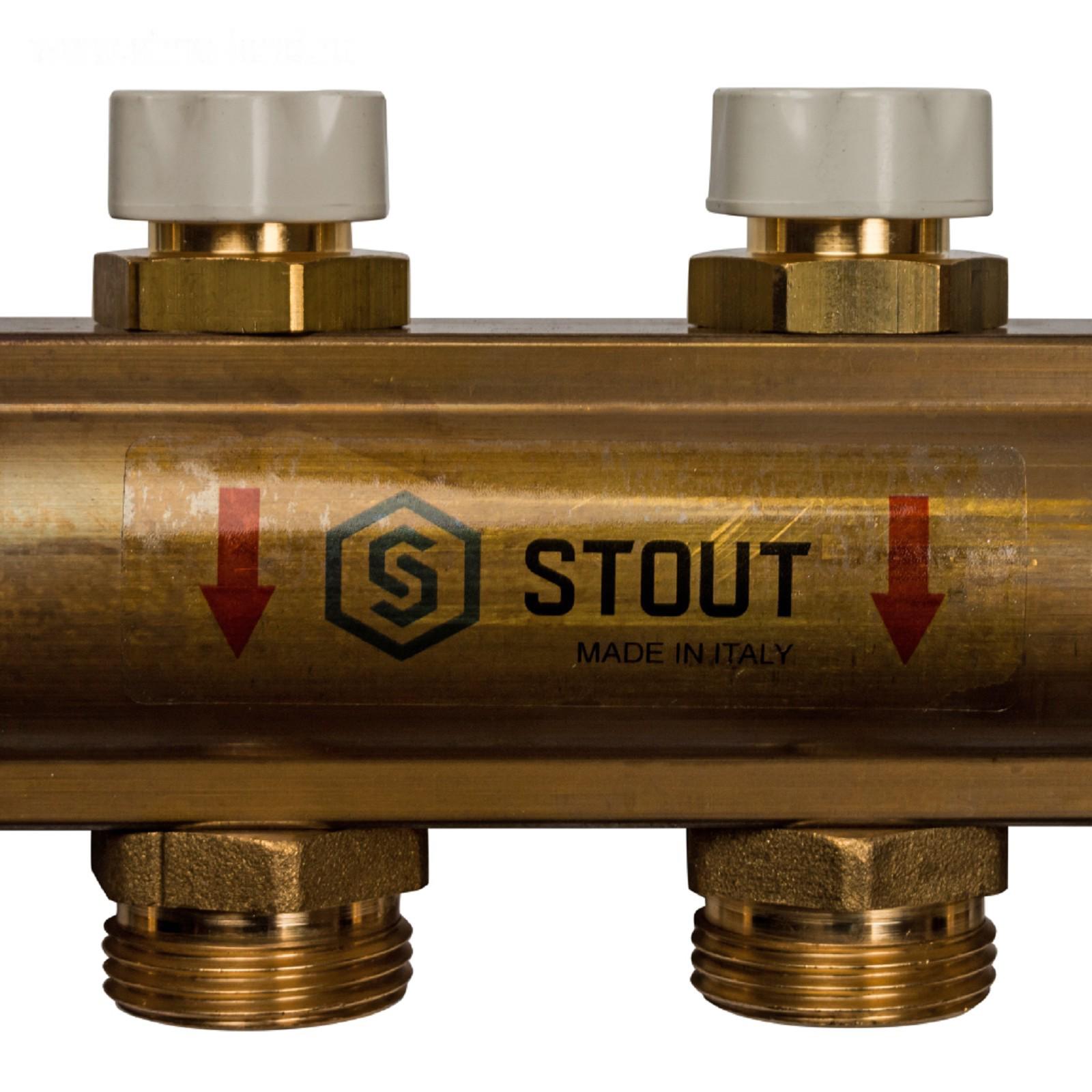 Коллектор распределительный STOUT SMB 0468 000006, 6 выходов, без расходомеров, латунь