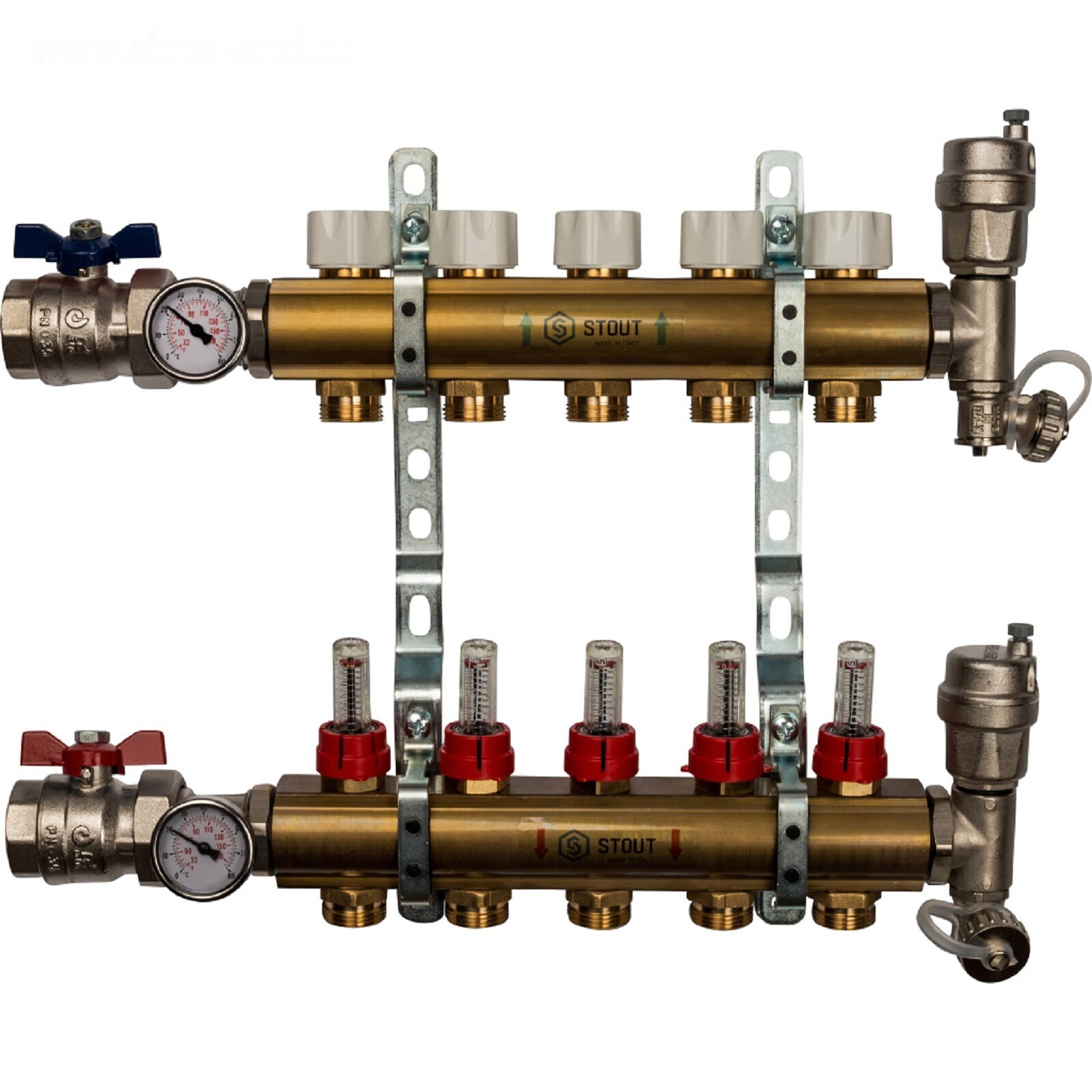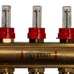 Коллектор распределительный STOUT SMB 0473 000005, 5 выходов, с расходомерами, латунь