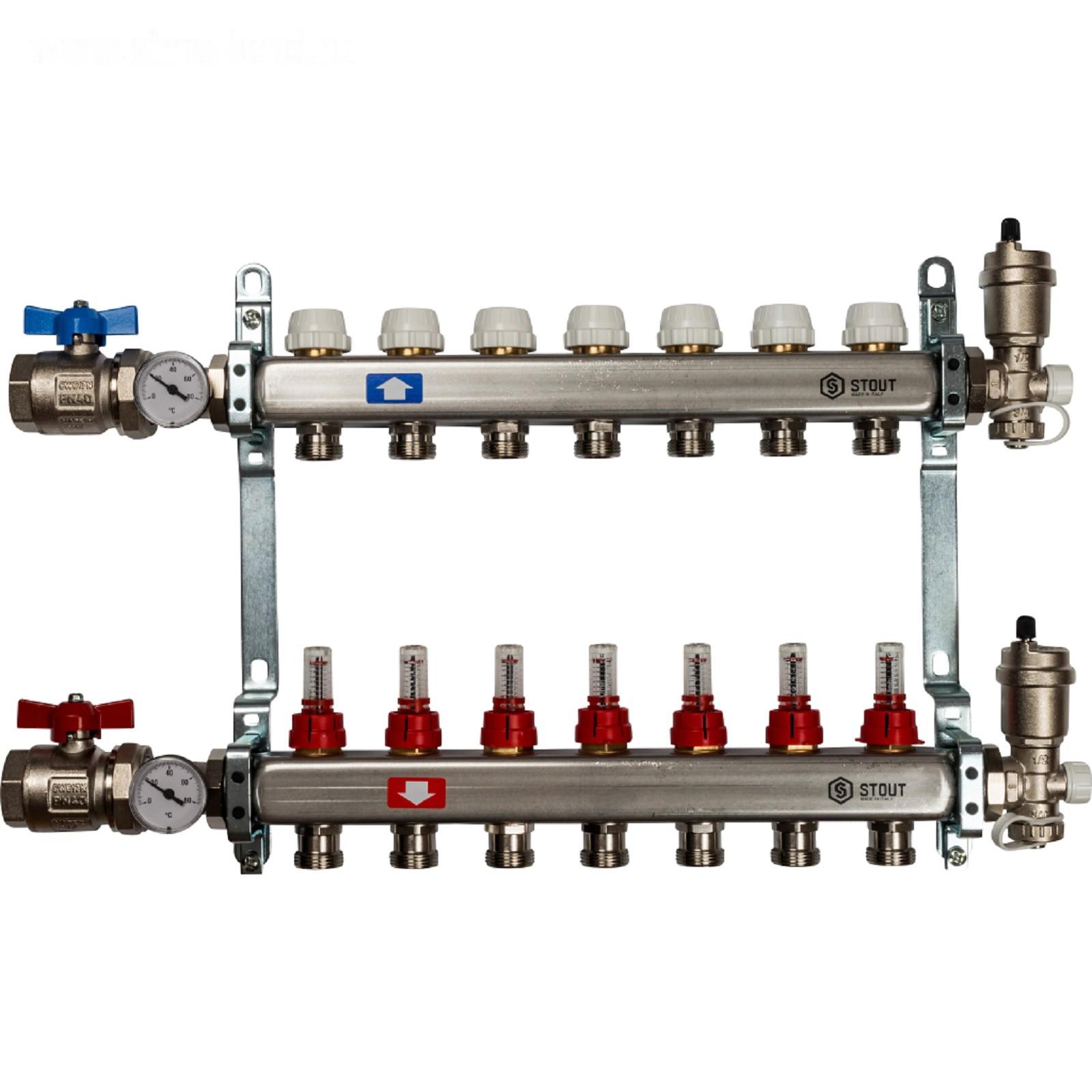 Коллекторная группа STOUT SMS 0907 000007, 1"х3/4", 7 выходов, с расходомерами, нерж. сталь