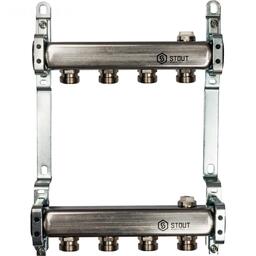 Коллектор STOUT SMS 0923 000004, нержавеющая сталь для радиаторной разводки 4 выходов